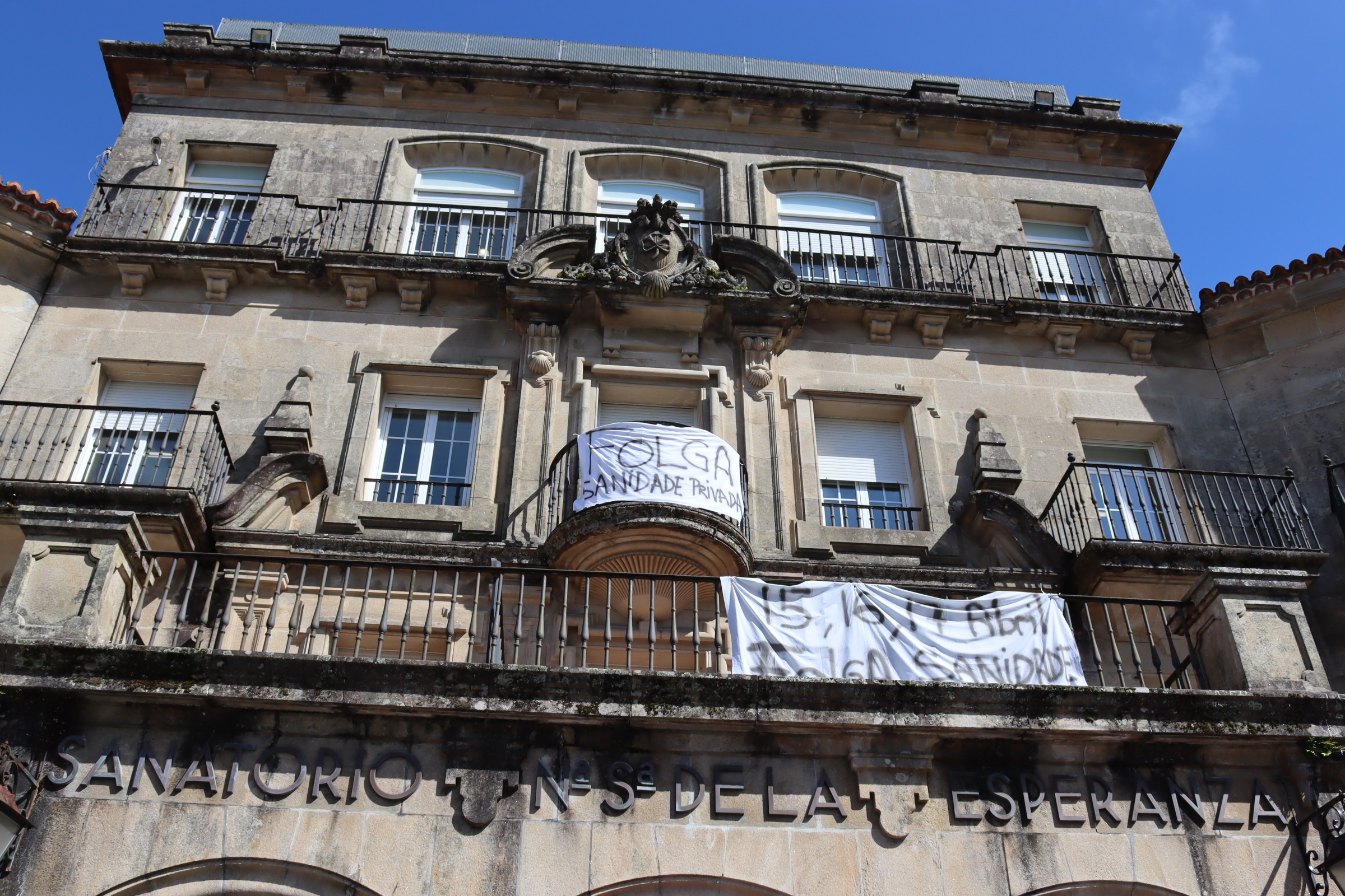 Traballadoras e traballadores da sanidade privada de Compostela manifestáronse esta mañá desde o Hospital da Esperanza até o da Rosaleda para demandar un convenio digno no sector da sanidade privada da provincia da Coruña. O persoal denuncia a paralización das negociacións do convenio; exixe a retirada das propostas da patronal, que suporían un retroceso nas súas condicións laborais, e que rematen as presións e as prácticas de esquirolaxe.