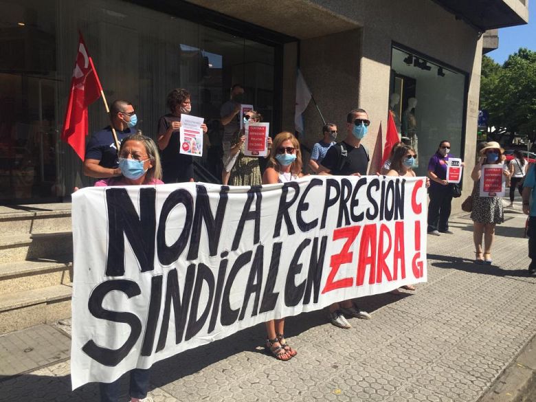 A sección sindical da CIG en Zara na provincia da Coruña mobilizouse este xoves diante dunha tenda de Santiago para denunciar publicamente a represión sindical que está a exercer o grupo Inditex, nomeadamente contra da presidenta do comité provincial, Carmiña Naveiro. Unha persecución contra as traballadoras e as súas representantes iniciada tras manifestar a súa oposición á modificación unilateral das condicións laborais sen negociación previa e impedindo o dereito á conciliación.