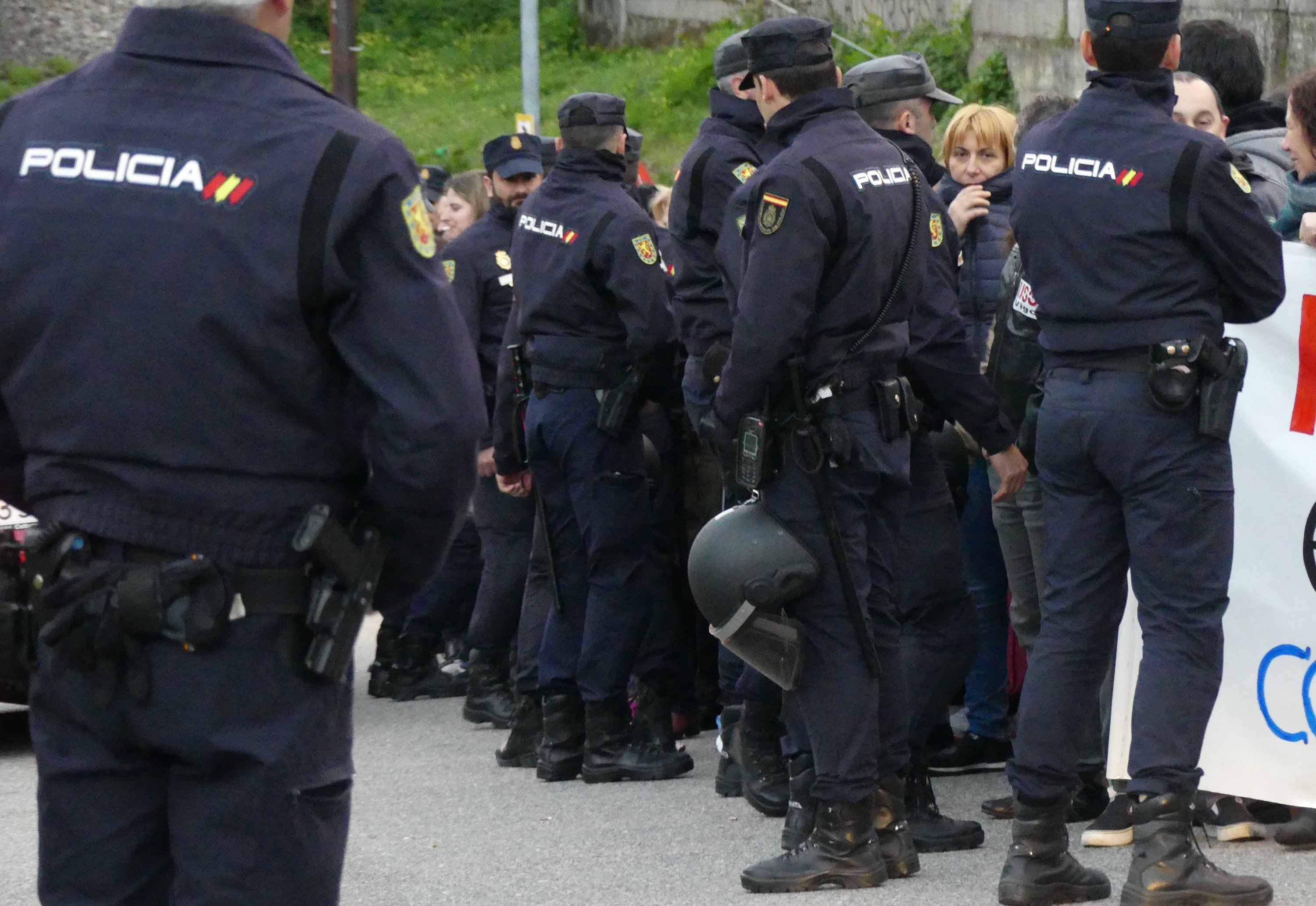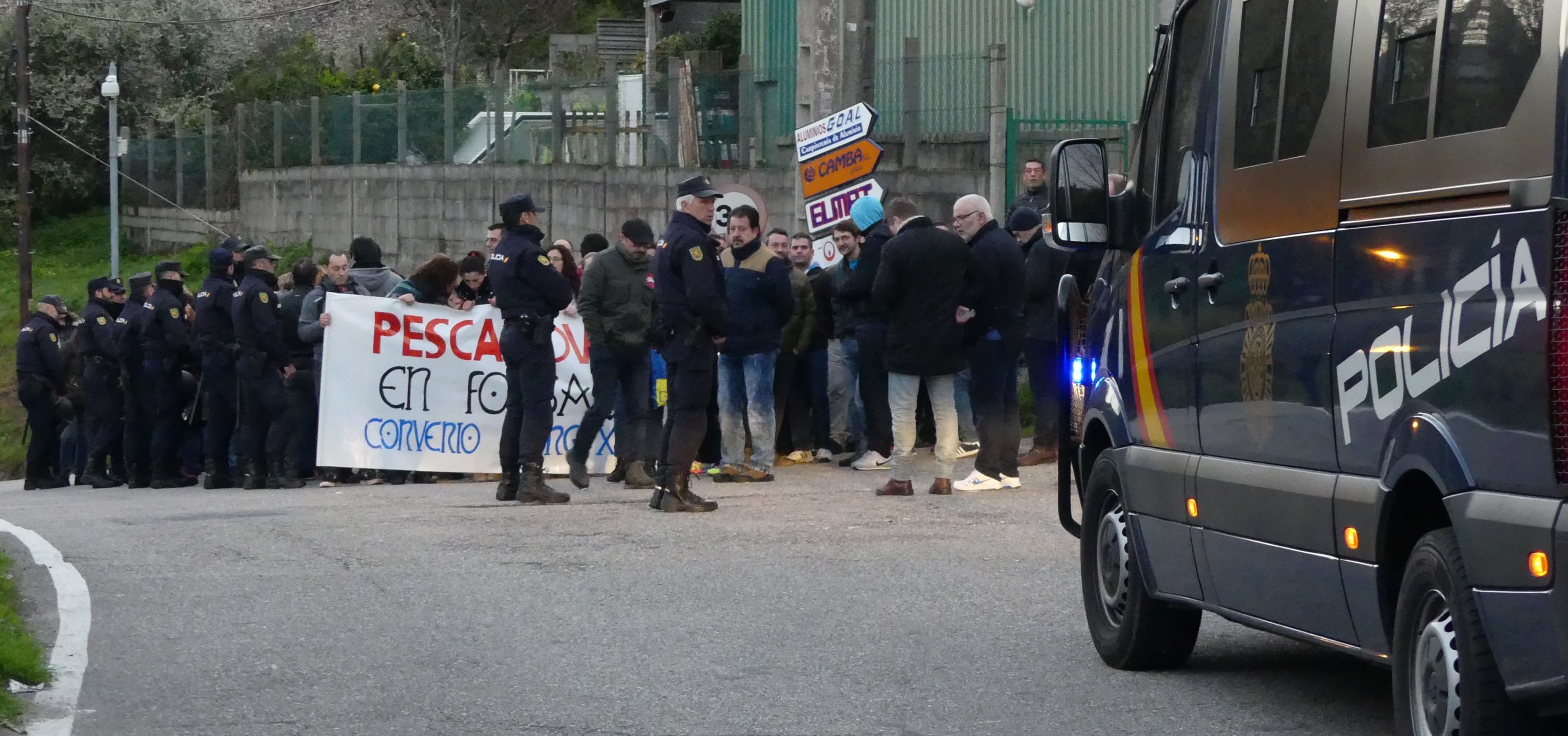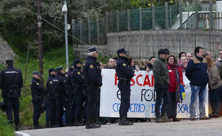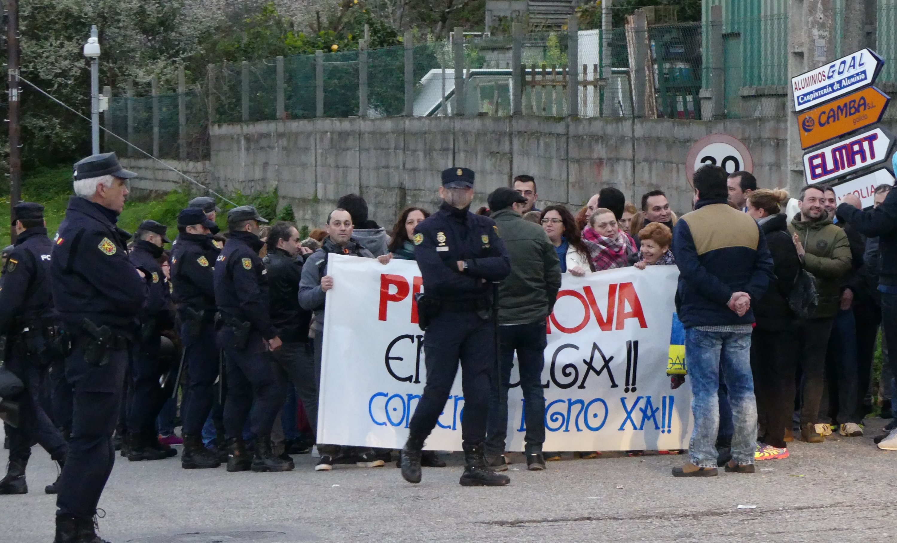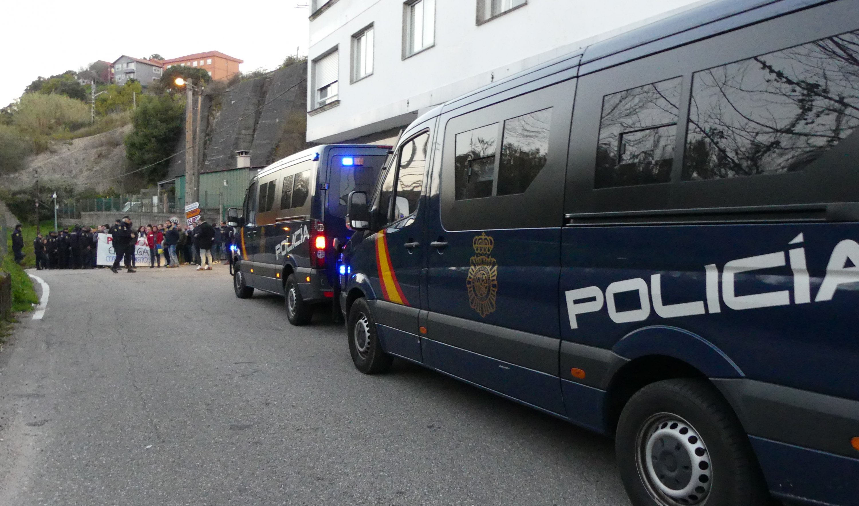 As mobilizacións da mañá estiveron vixiladas por un importante despregue da Policía española, especialmente nas inmediacións da fábrica de Chapela, á que unicamente accedeu persoal de oficinas. Neste punto concentráronse a mioría dos traballadores/as, que mesmo depregaron unha faixa e berraron consignas. No caso do Porriño a presenza de axentes -neste caso da Garda Civil- foi moito menor.