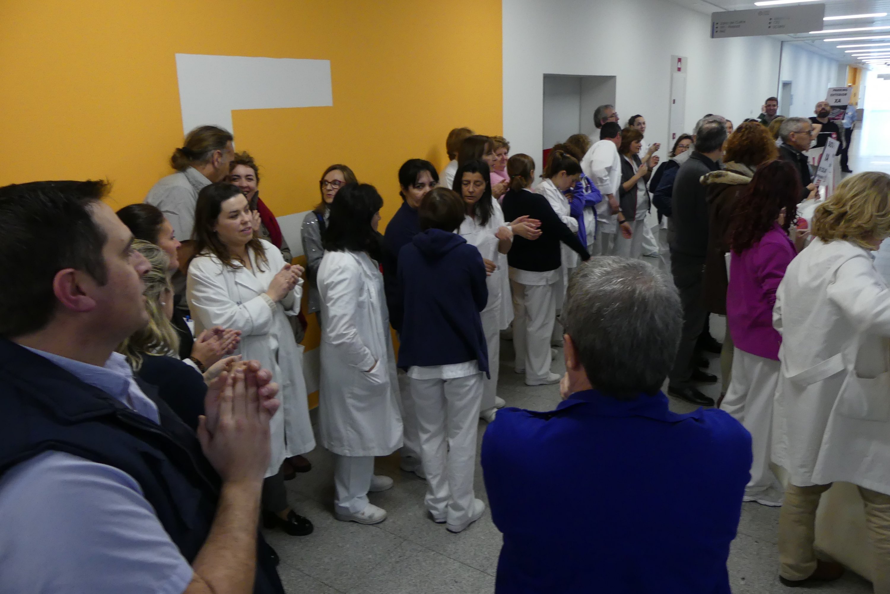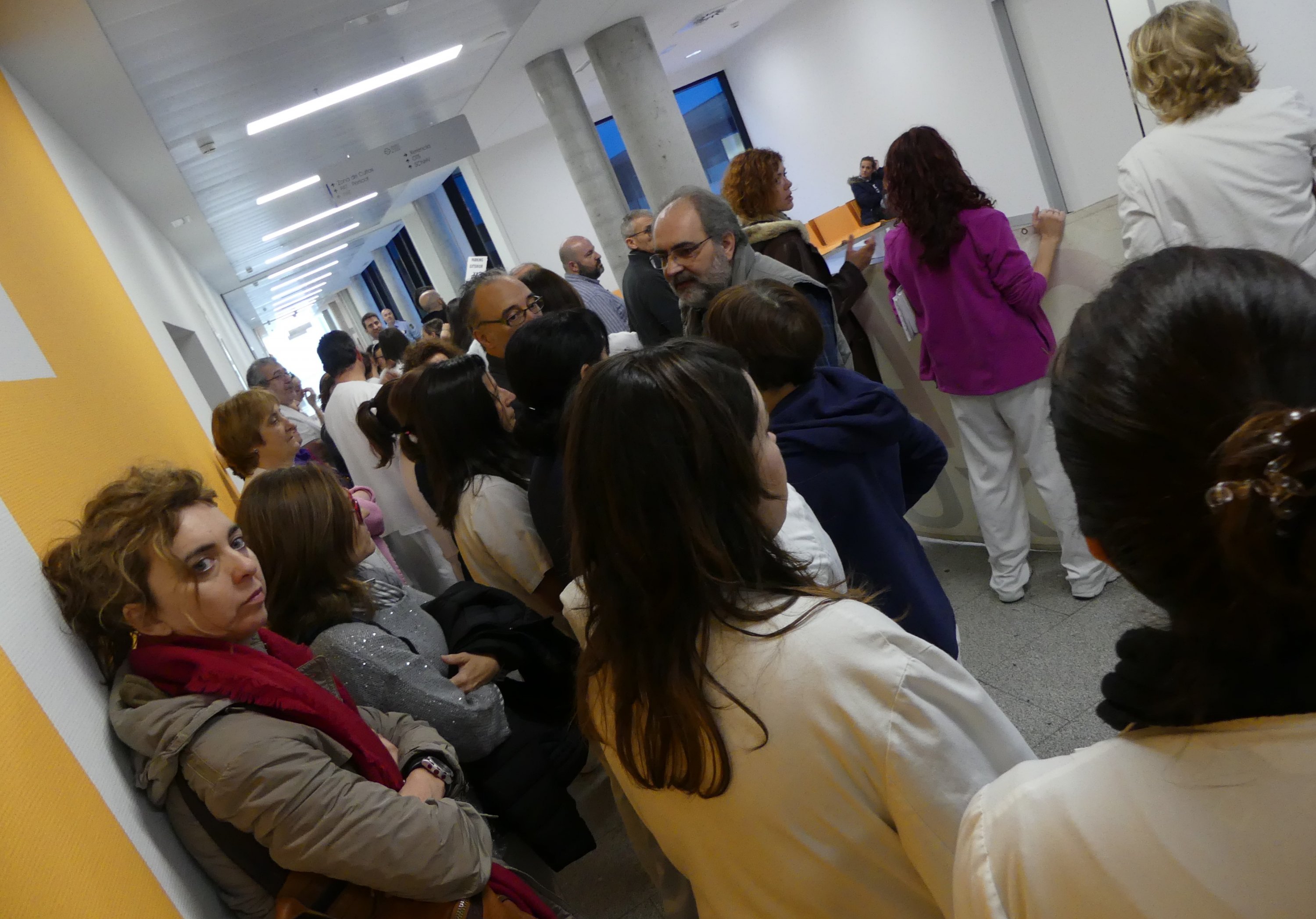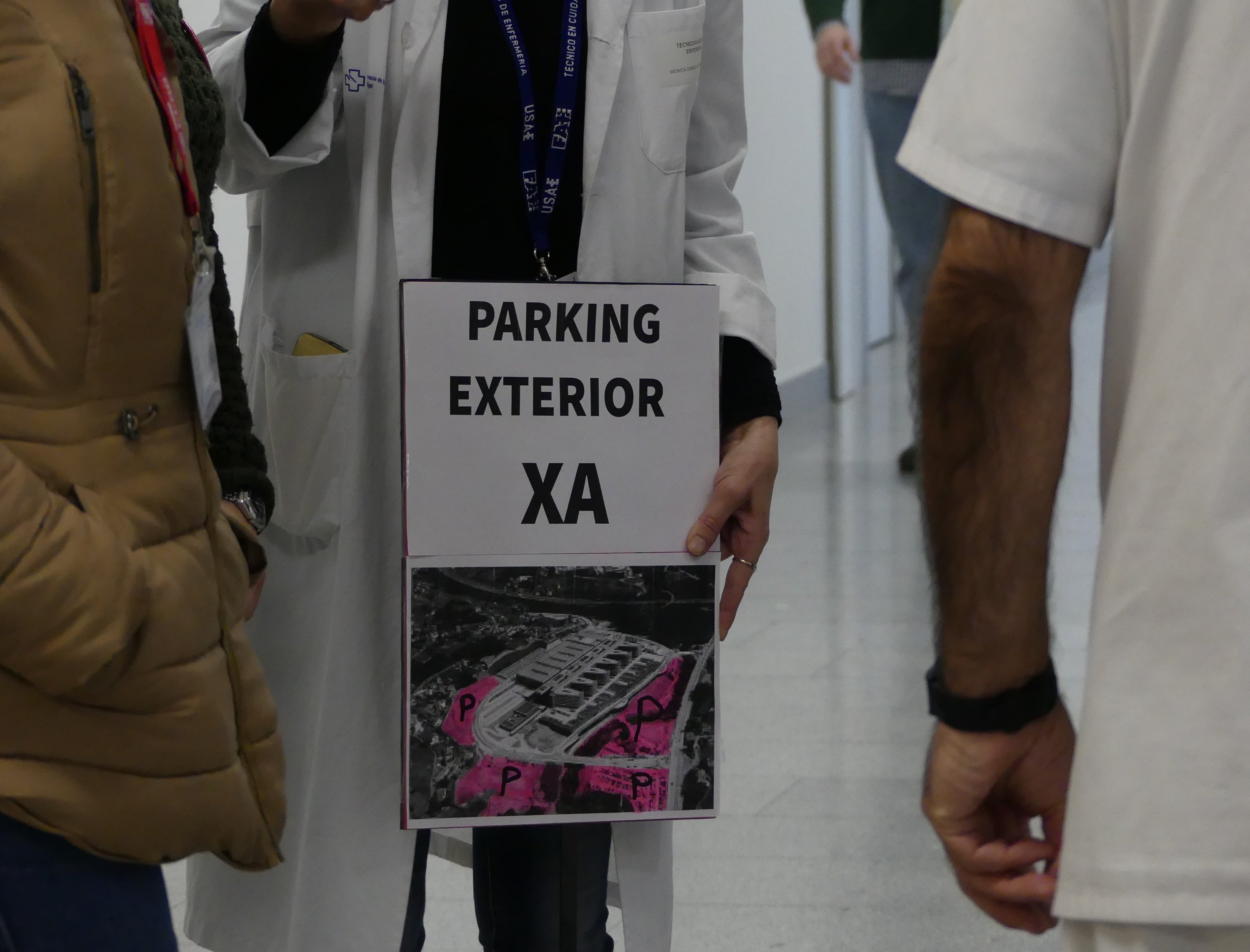 A xunta de persoal do Complexo Hospitalario Universitario de Vigo (Chuvi) desenvolveu unha concentración esta mañá diante do despacho da Xerencia da EOXI, no hospital Álvaro Cunqueiro, para reclamar unha solución á falta de aparcamento que provoca un caos circulatorio no exterior do centro médico especialmente durante as horas punta.