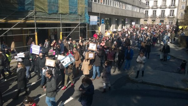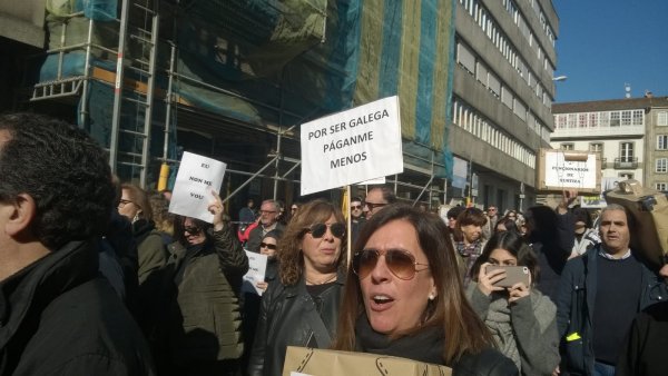 Miles de funcionarias e funcionarios de Xustiza tomaron as rúas compostelás, portando maletas, e ao berro de “Eu non me vou”. Respondían así ao convite que lles fixo en mesa de negociación o Director Xeral de Función Pública, Xosé María Barreiro, quen os/as convidou a pedir o traslado a outra comunidade autónoma se estaban descontentos/as co salario que tiñan en Galiza.