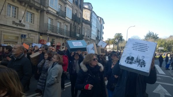Na manifestación palpábase o enorme enfado do funcionariado desta administración que, ao longo do percorrido, non deixou de asubiar e de exixir, a viva voz, as dimisións tanto de Rueda como de Barreiro.