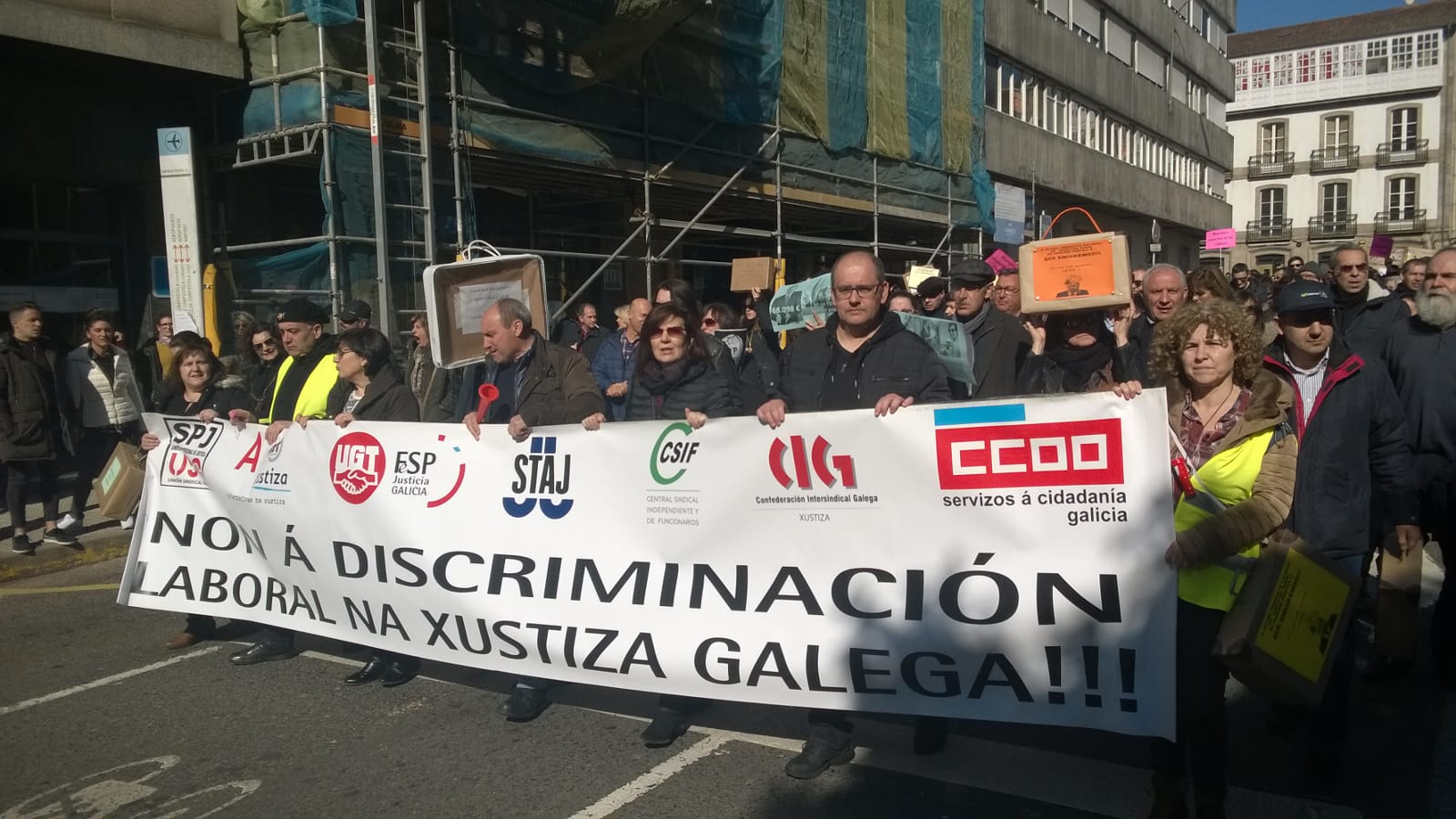 Traballadoras/es de Xustiza toman as rúas de Compostela en demanda de que rematen as discriminacións