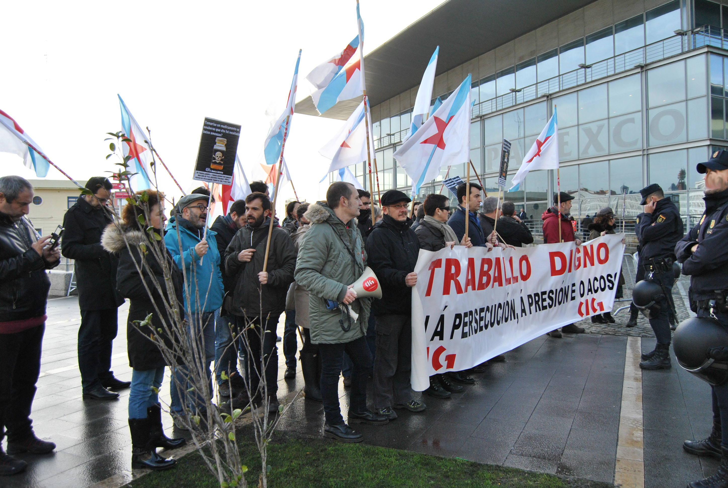 Con motivo da III Convención Comercial de Abanca, a CIG realizou unha concentración diante da Palexco (A Coruña) para protestar polas políticas comerciais e laborais da entidade e demandar unha estratexia de negocio que sexa sostíbel para os/as traballadores/as e respectuosa coa clientela.