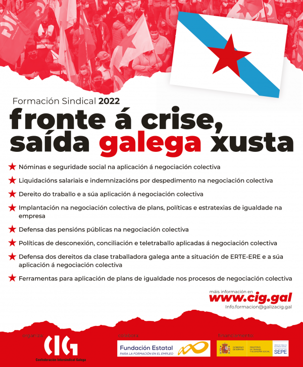 Por iso, neste 2022 contamos con dúas liñas de formación, da cal dispós de toda a información nas federacións e nos locais da CIG.