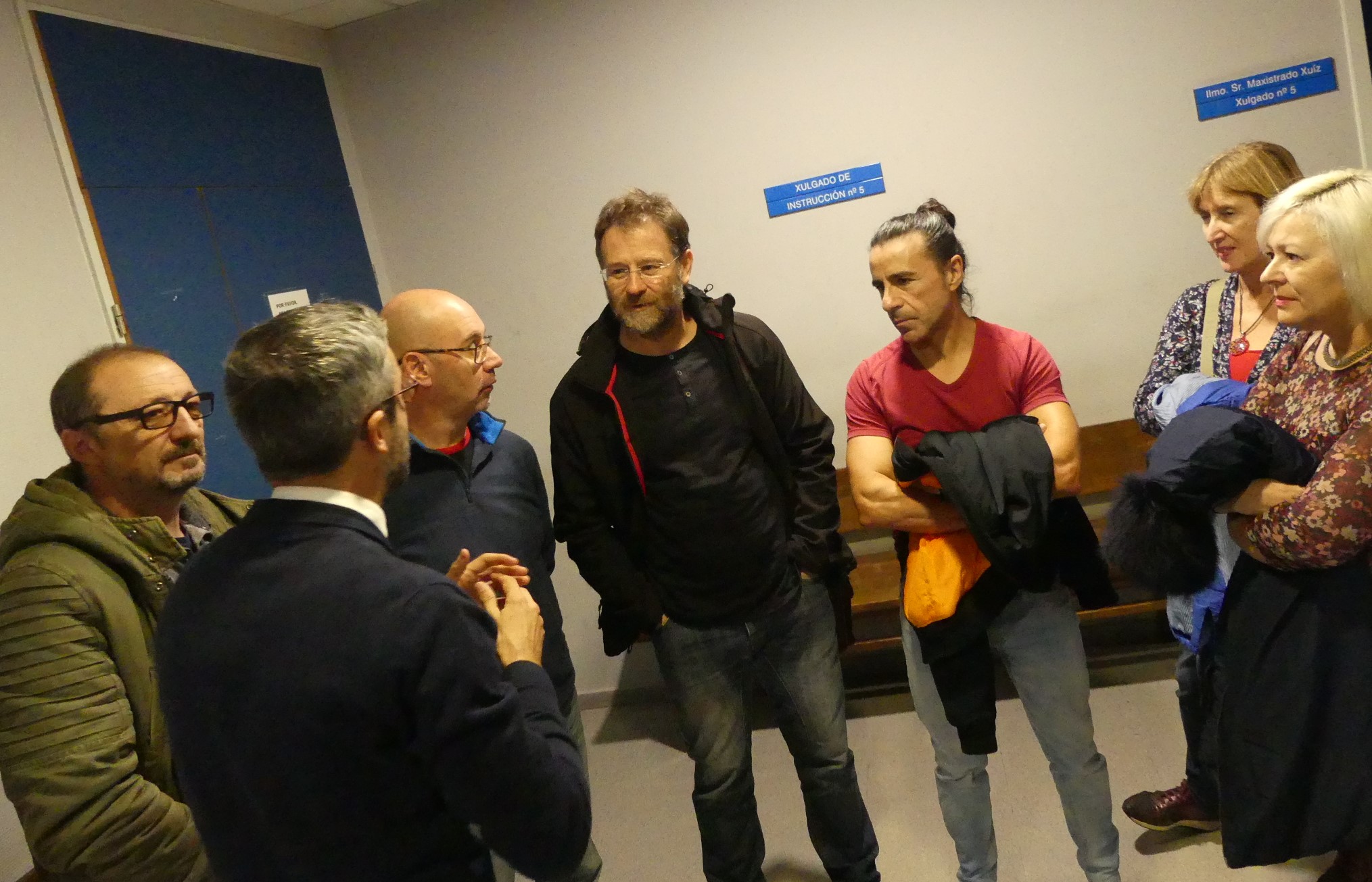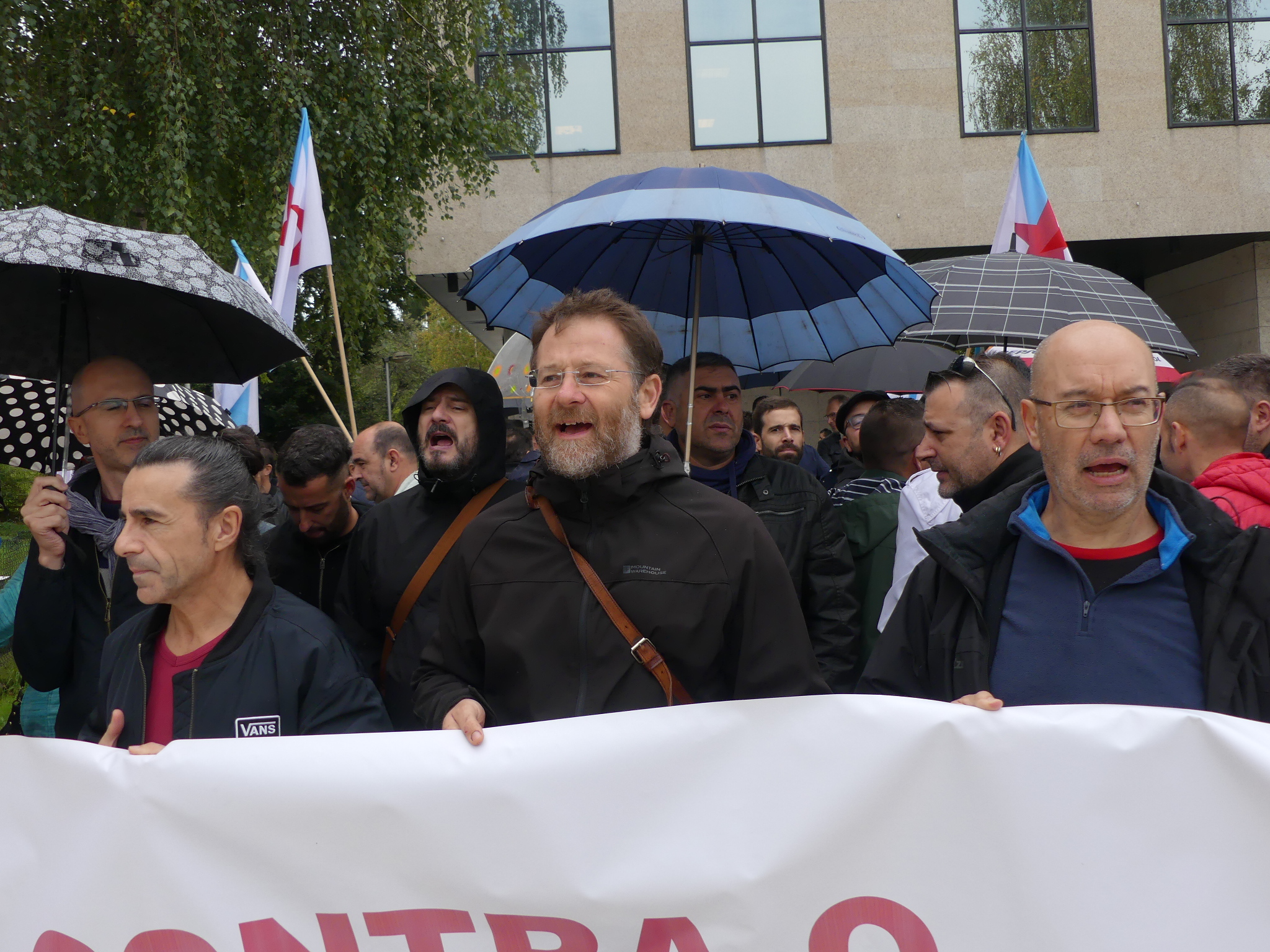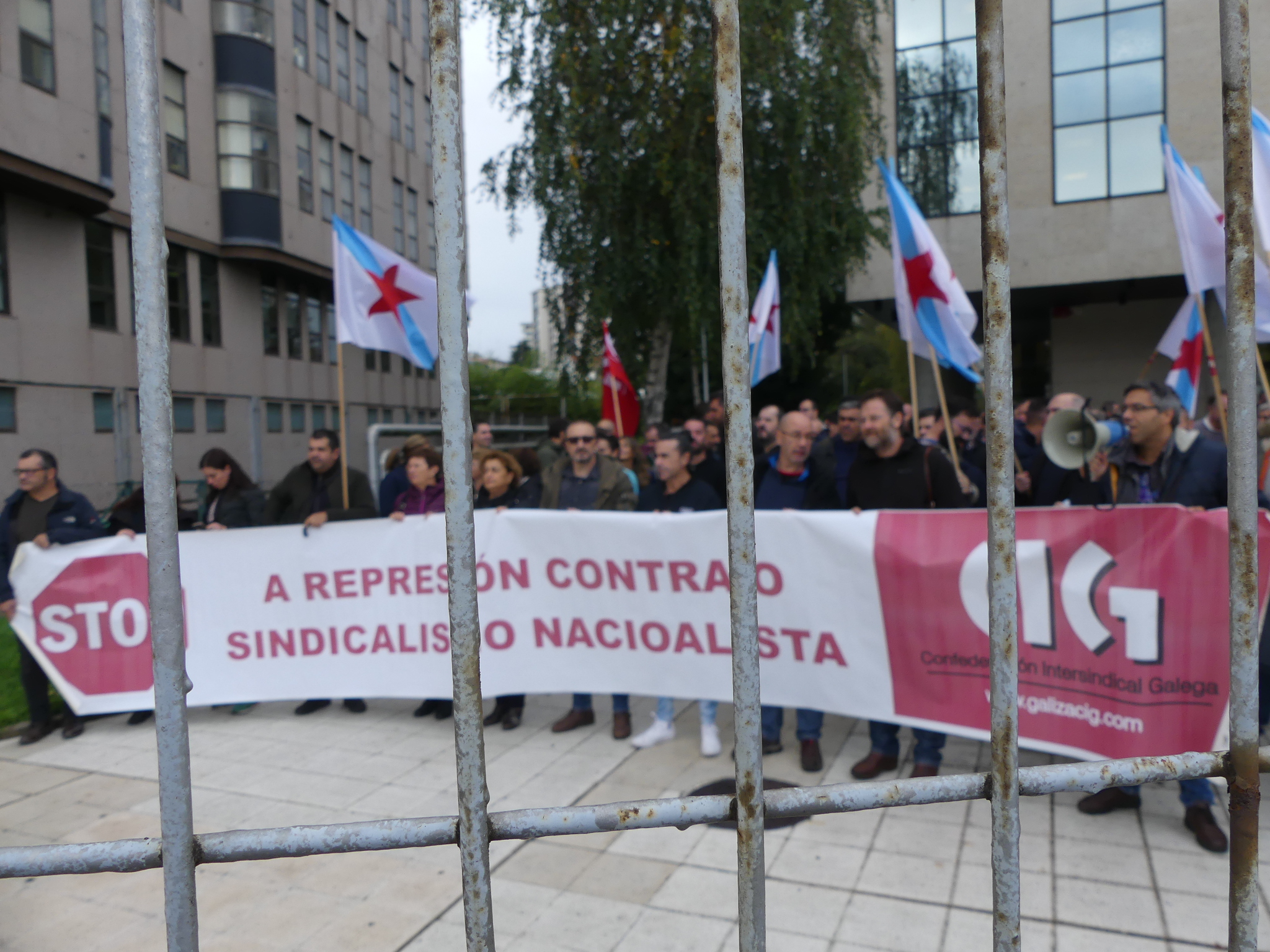 Máis dunha hora antes do inicio da vista oral, as portas dos xulgados vigueses ateigáronse de persoas que, convocadas pola CIG, quixeron solidarizarse co acusado, ademais de esixir a derrogación da reforma do Código Penal e da Lei Mordaza. Durante a protesta, na que estivo presente o secretario xeral da CIG, Paulo Carril, despregouse unha faixa na que se podía ler “Stop represión contra o sindicalismo nacionalista” e berráronse consignas como “Código penal, para a patronal” ou “Non hai represión que pare a loita obreira”.