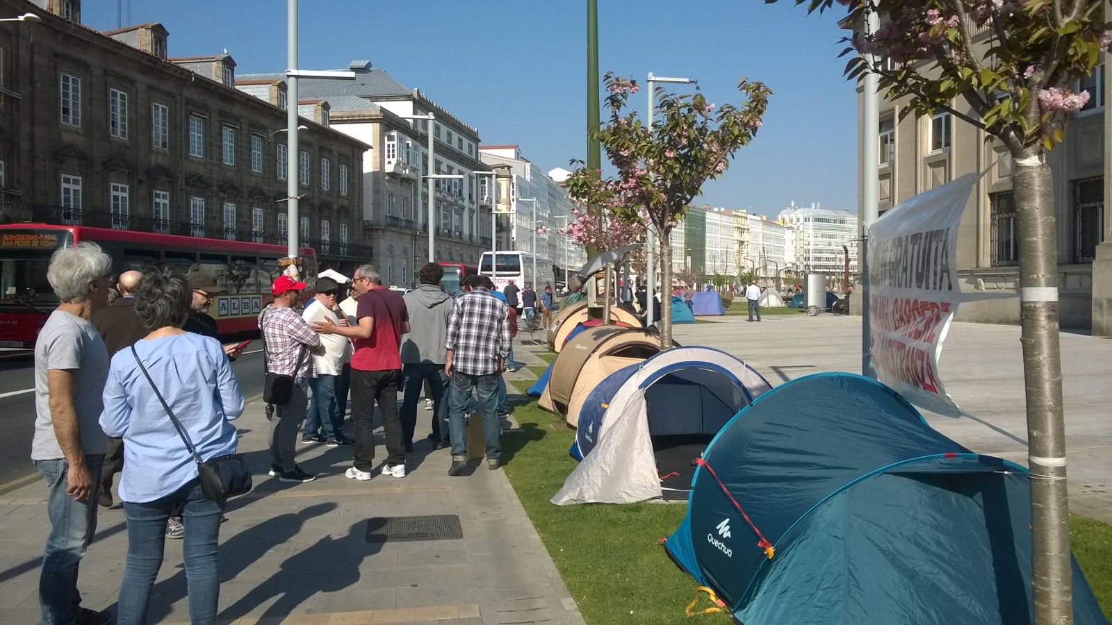 Arredor de 20 tendas están listas diante da Autoridade Portuaria da Coruña para a acampada que, entre hoxe e mañá, realiza a Comisión Aberta pola Defensa do Común (da que a CIG forma parte) para esixir a devolución gratuíta dos terreos da Solana e o Hotel Finisterre, todos os peiraos, o cárcere e os terreos do campo da Estrada. Baixo o lema "A Coruña non se vende", reclaman recuperar para o pobo o que historicamente é da cidade.