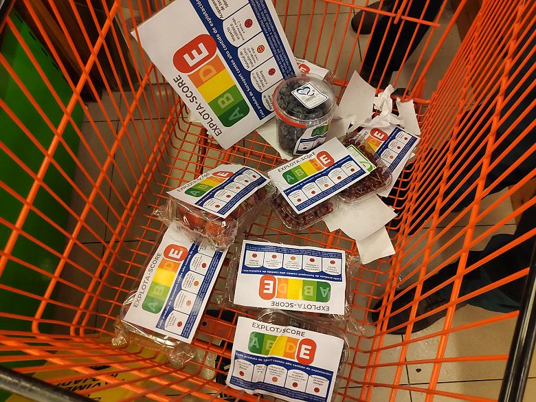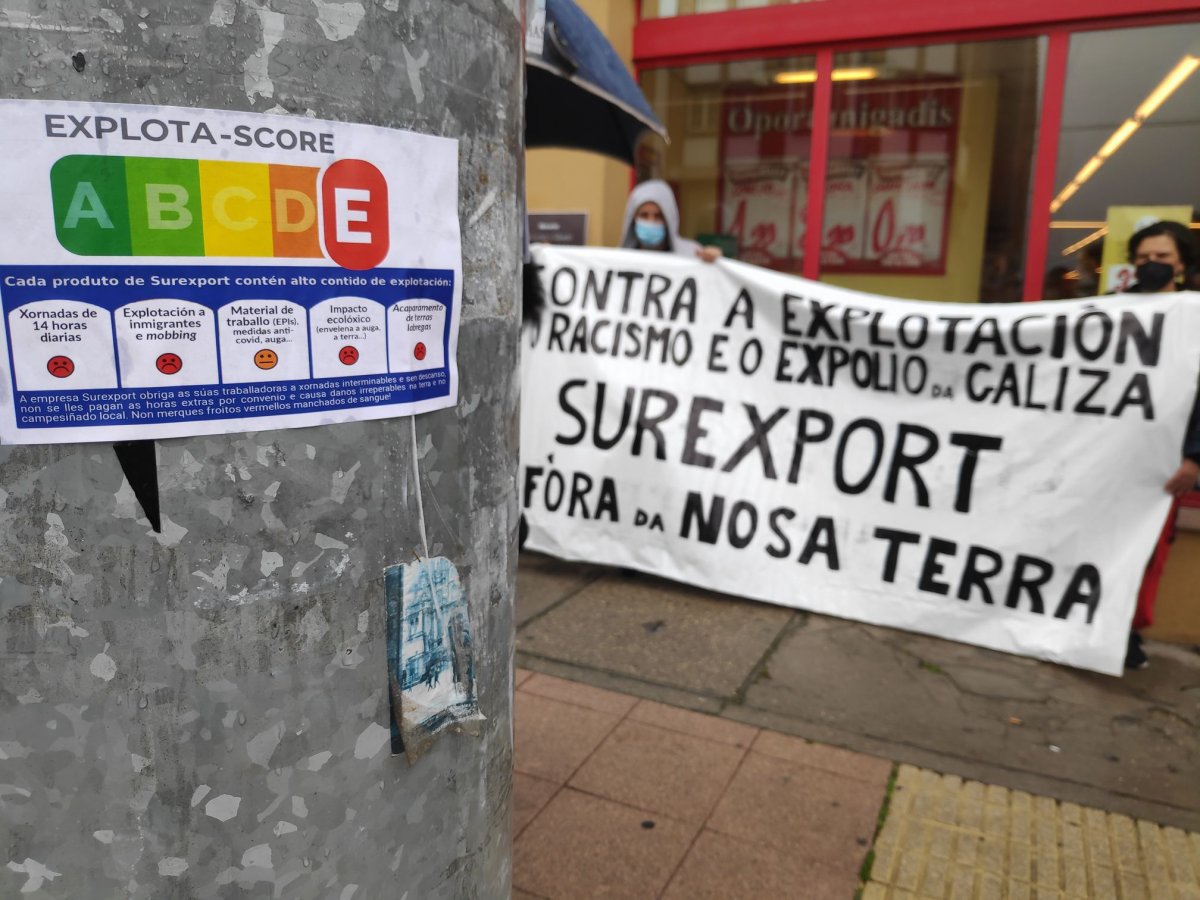 A acción desenvolveuse nun supermercado de Vilalba e consistiu no reparto de follas informativas entre a clientela e na identificación dos produtos de Surexport con adhesivos nos que se advirte das condicións de explotación laboral que padecen os traballadores e as traballadoras desta empresa, así como do modelo de produción agraria "destrutor" que fomenta a compañía.