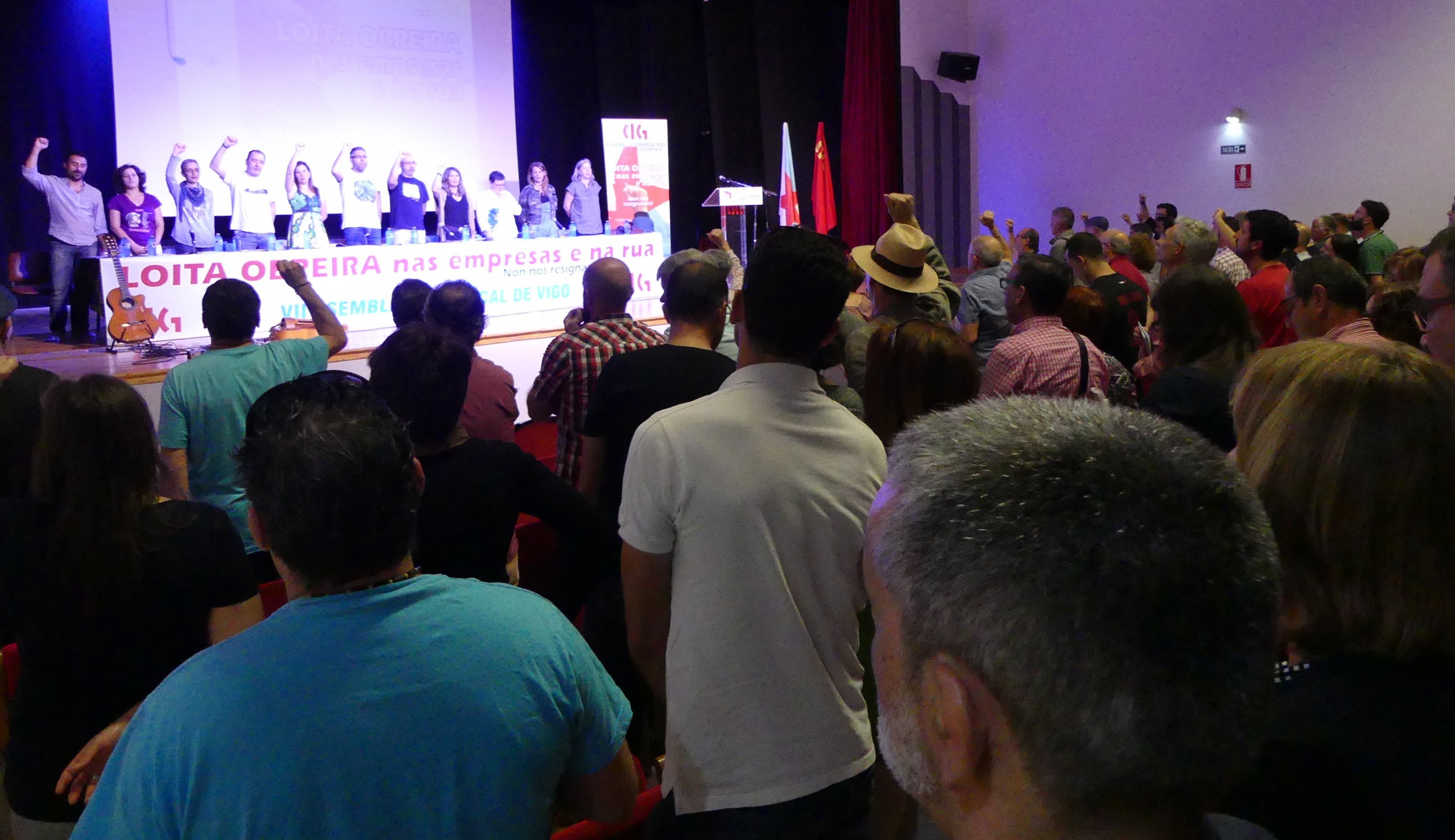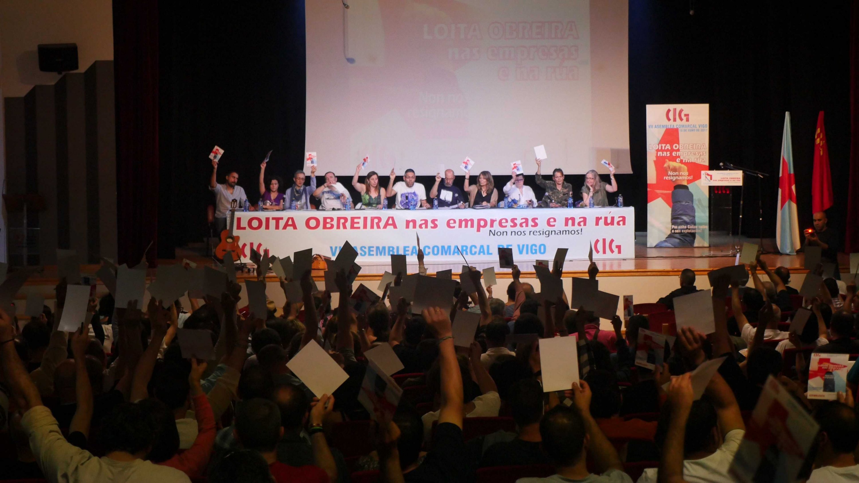 Para rematar, a modo de resume citou o lema baixo o que se celebrou o recente VII Congreso Confederal: “Coa CIG somos máis fortes”, que relacionou co escollido para este proceso comarcal pola Unión Comarcal de Vigo: “Loita obreira nas empresas e na rúa. Non nos resignamos! Por unha Galiza ceive e sen explotación”.