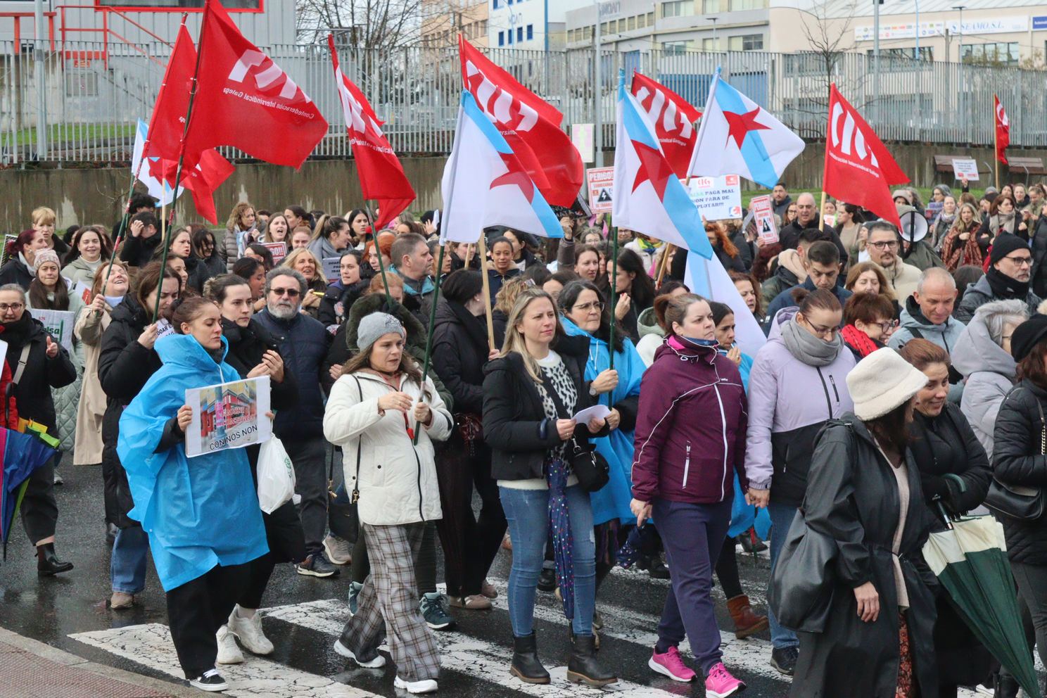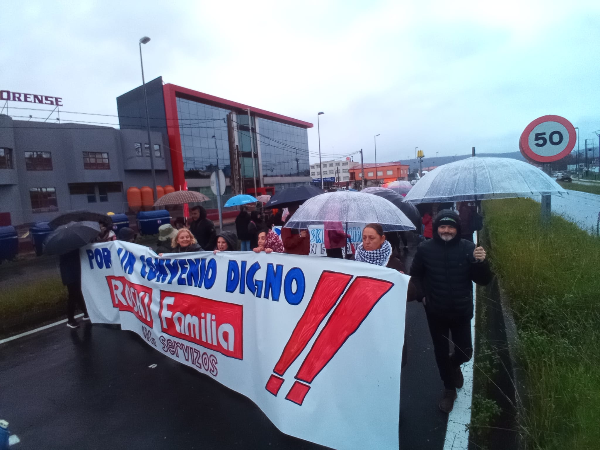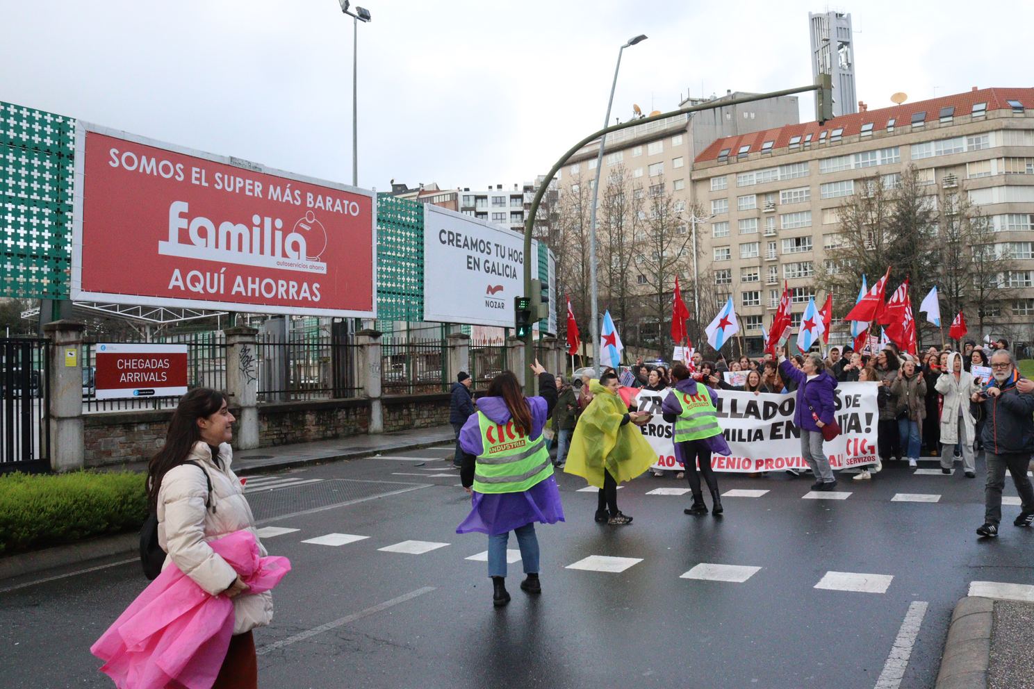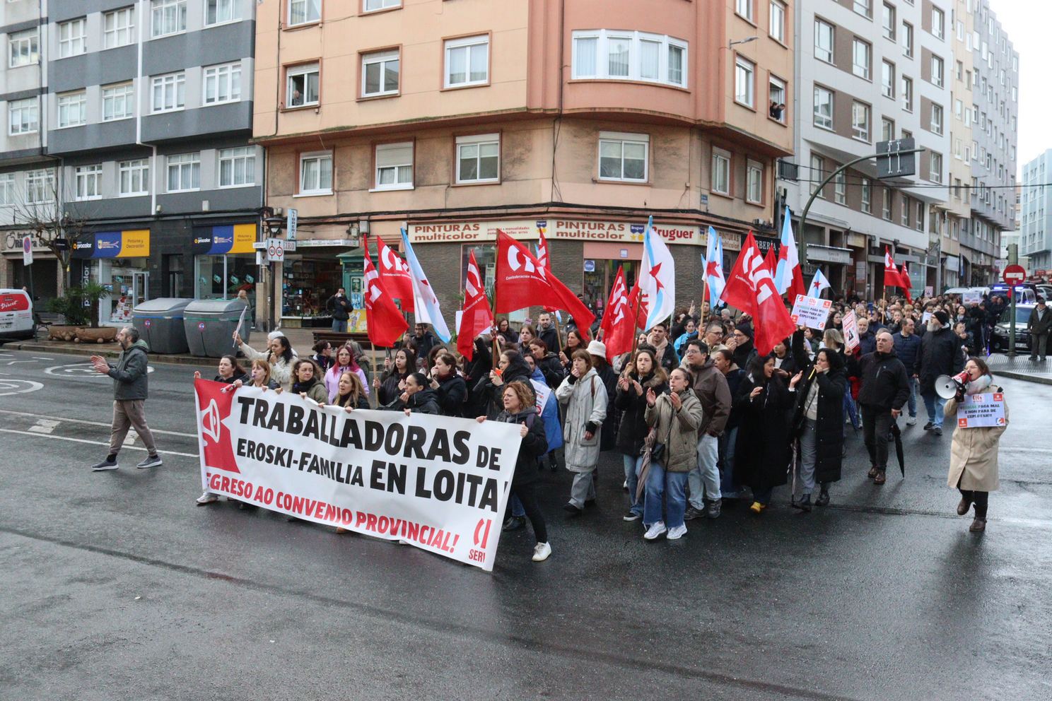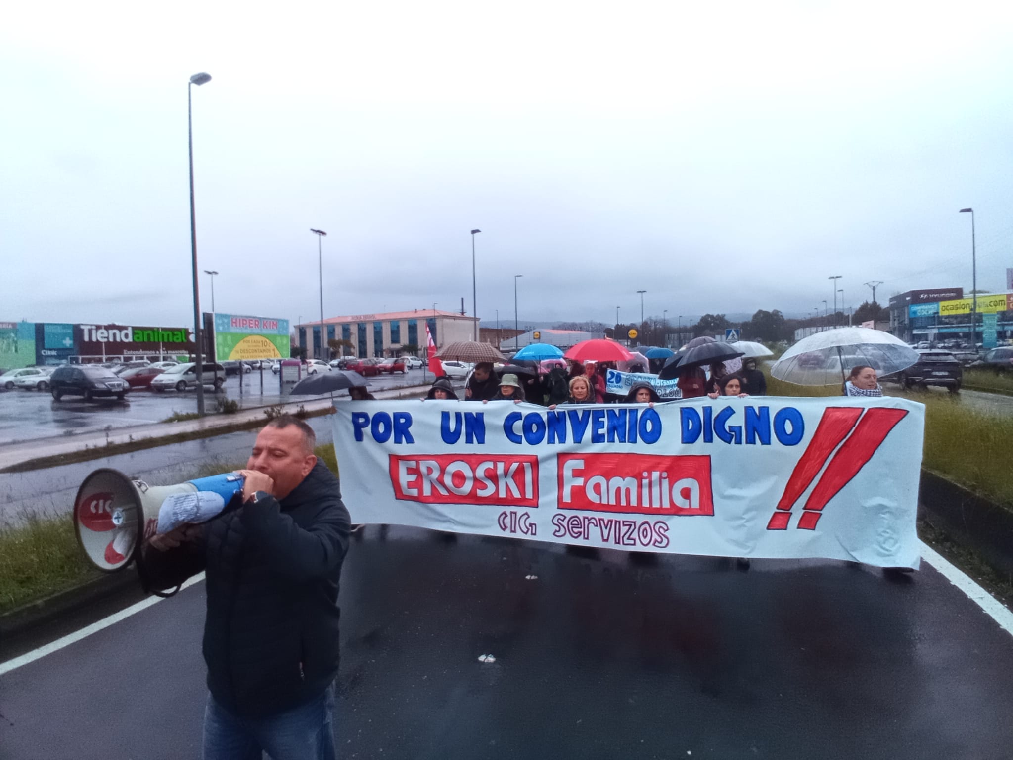 Na Coruña, centos de persoas saíron en manifestación dende o Eroski de Vioño, en Ferrol a manifestación partiu do Eroski do polígono da Gándara, en Compostela fíxose unha concentración no Eroski da Choupana e en Ribadeo a protesta foi diante do propio centro de traballo.