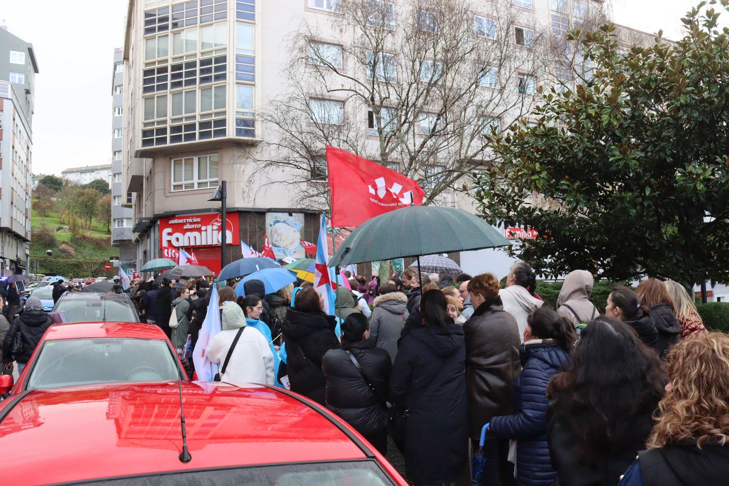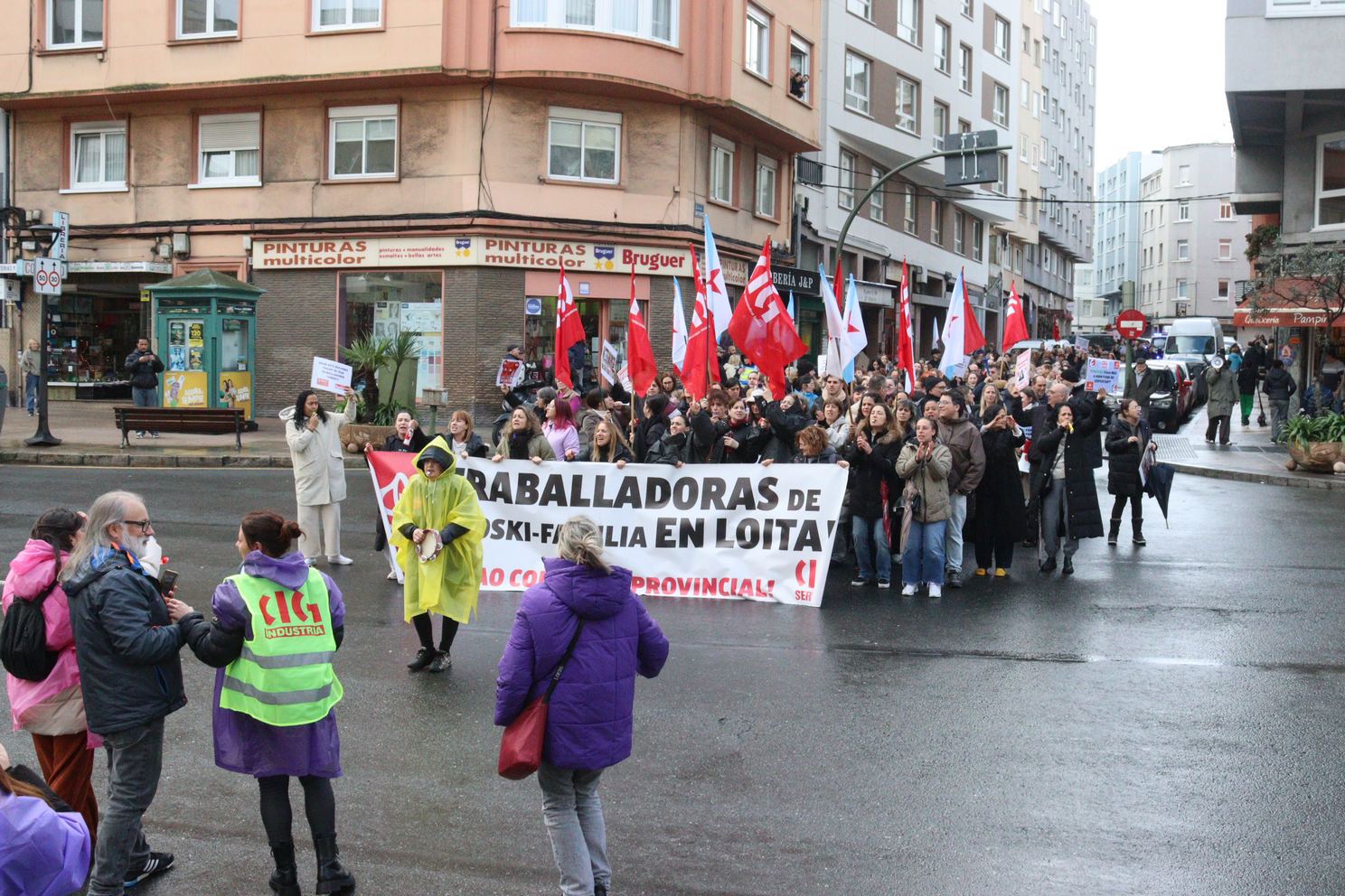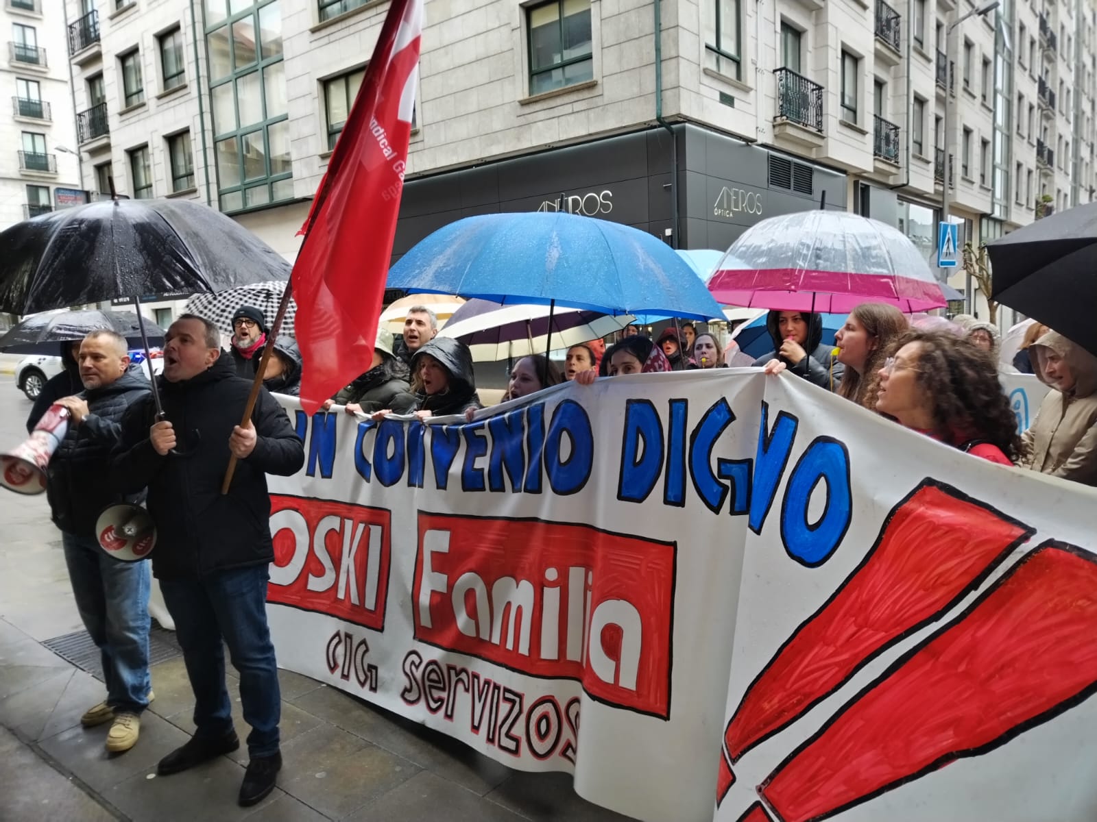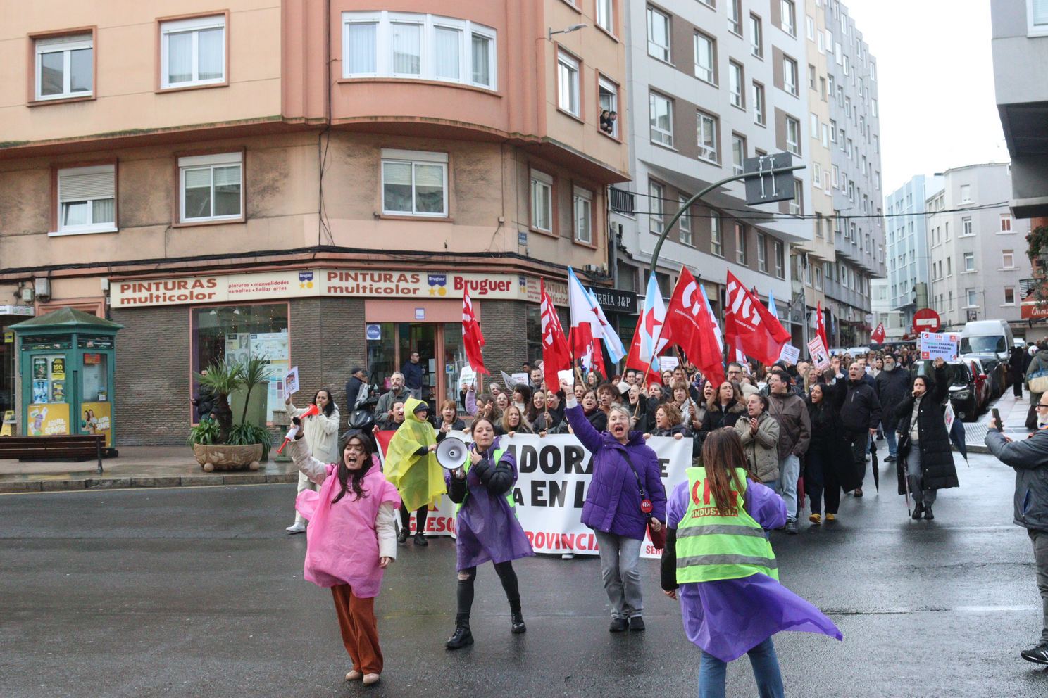 Na Coruña, centos de persoas saíron en manifestación dende o Eroski de Vioño, en Ferrol a manifestación partiu do Eroski do polígono da Gándara, en Compostela fíxose unha concentración no Eroski da Choupana e en Ribadeo a protesta foi diante do propio centro de traballo.