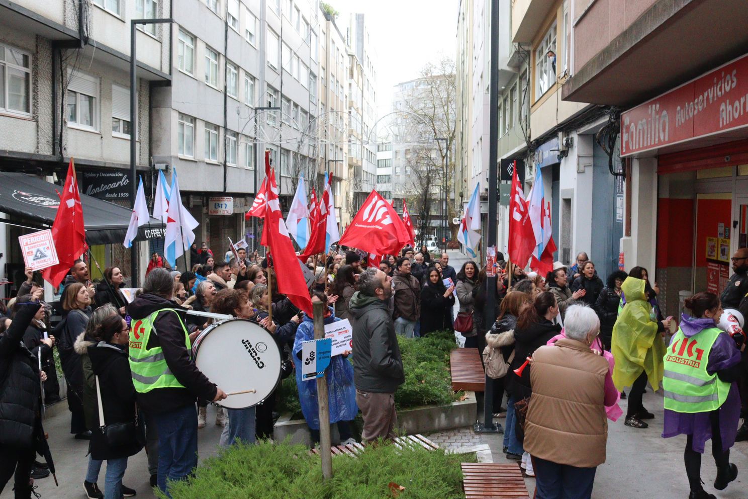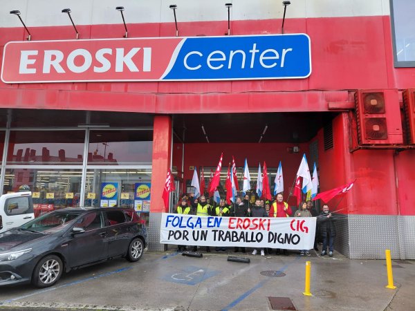 A primeira xornada de folga na historia de Vegalsa-Eroski está rexistrando un importantísimo seguimento, con centros de traballo funcionando a mínimos e tirando de persoal temporal, e cun reforzo inaudito no servizo de seguridade privada. Aínda que a incidencia é desigual, a CIG valora moi positivamente a resposta dada polas traballadoras e traballadores tanto á convocatoria de folga como ás mobilizacións realizadas este sábado para reivindicar condicións salariais e laborais dignas e máis contratación para poder afrontar a sobrecarga de traballo.