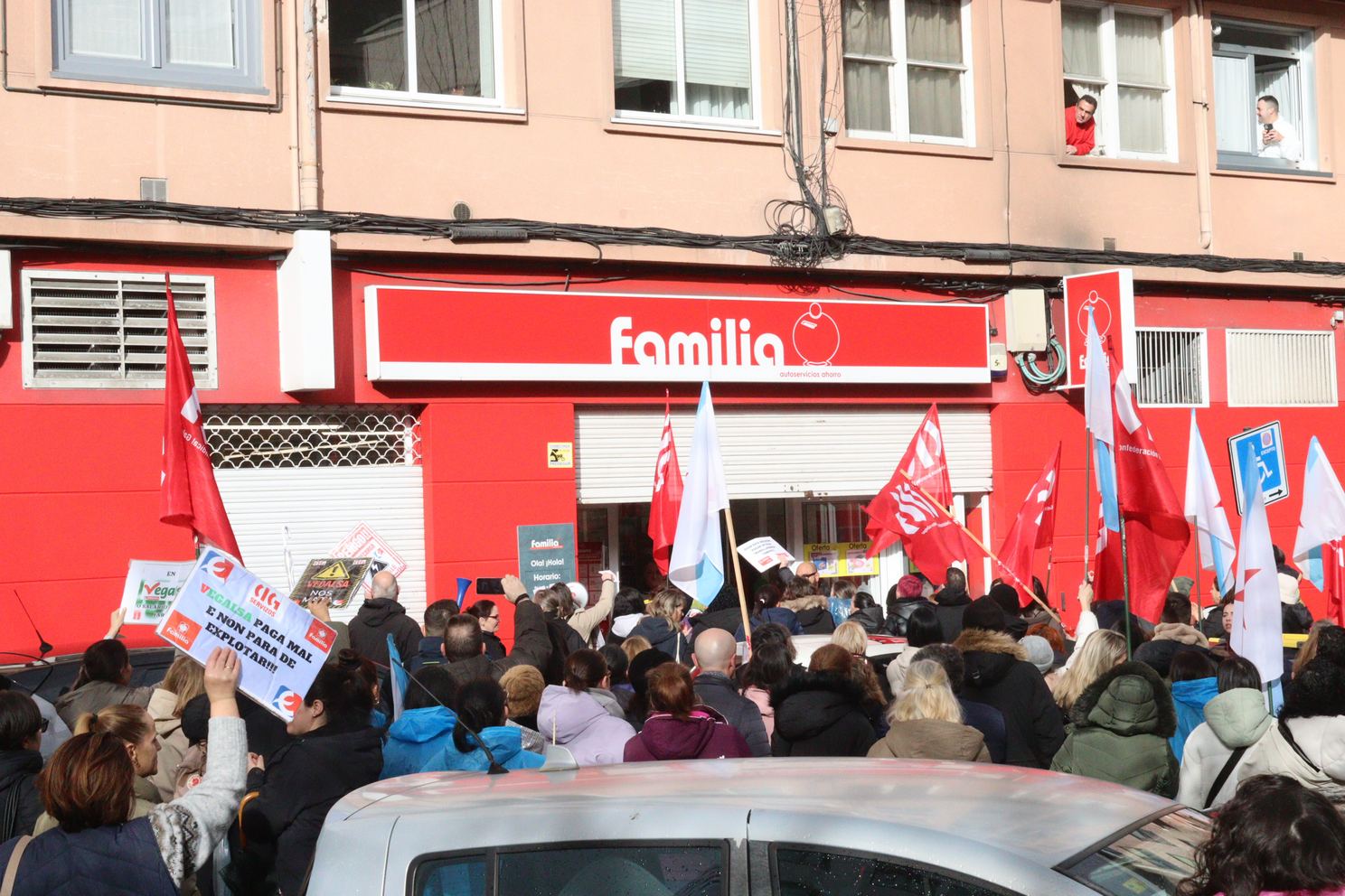 Alejandra Formoso, delegada da CIG, denunciou que os salarios de Vegalsa-Eroski son os máis baixos do sector (unha persoa de recente contratación percibe mil euros menos ao ano que unha de Gadis ou Froiz) e ademais teñen as xornadas máis longas ao non computárselle como tempo efectivo de traballo os 15 minutos de descanso. A isto súmanse peores condicións sociais e o esgotamento físico e mental das traballadoras e traballadores pola sobrecarga laboral continuada que teñen de soportar.