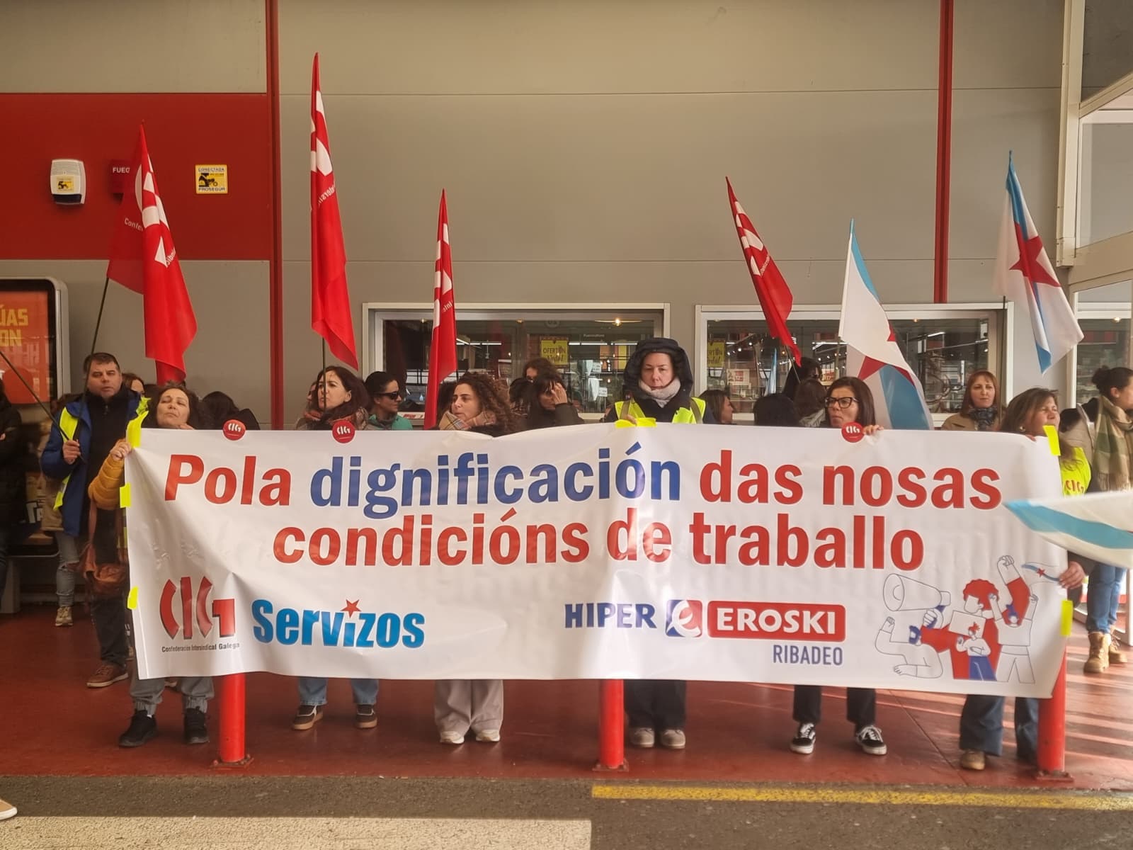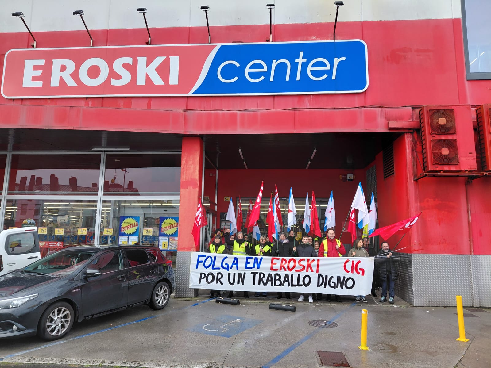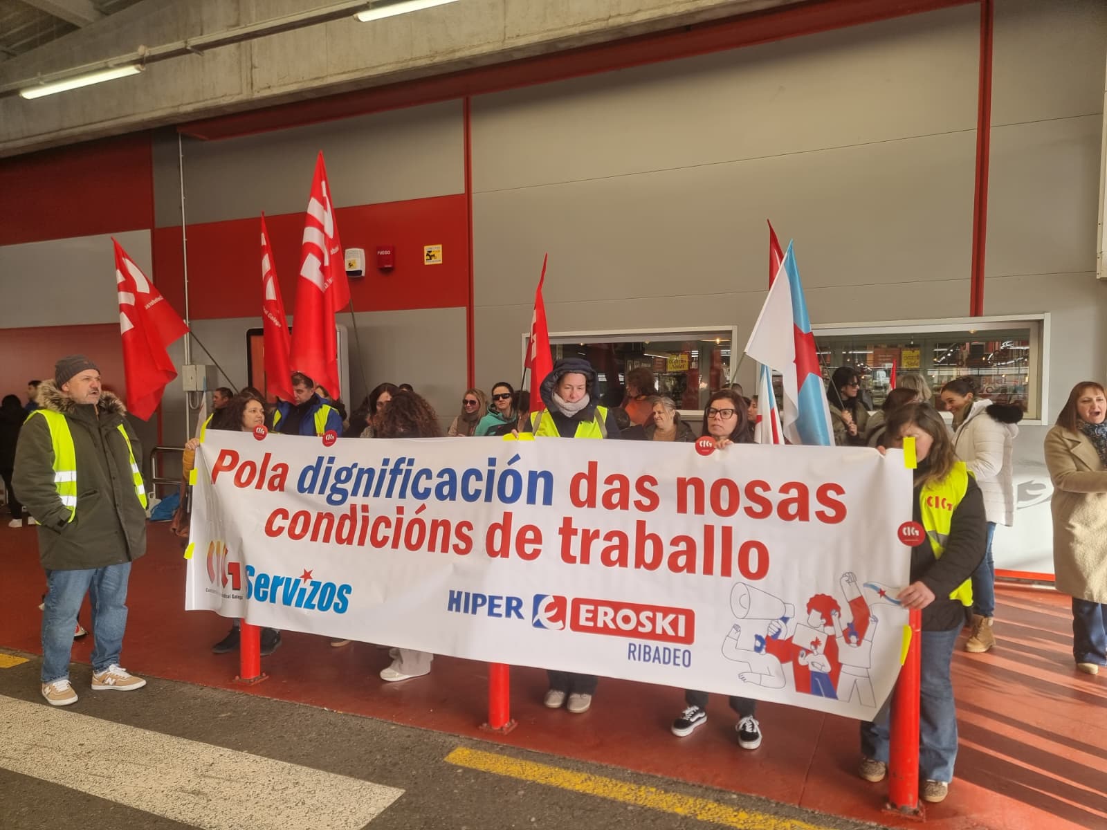 Amplísimo seguimento da folga en Vegalsa-Eroski para reclamar condicións laborais e salariais dignas