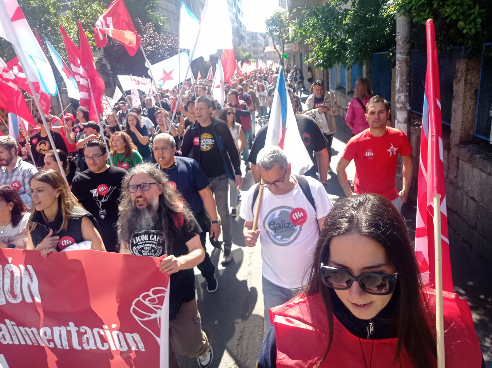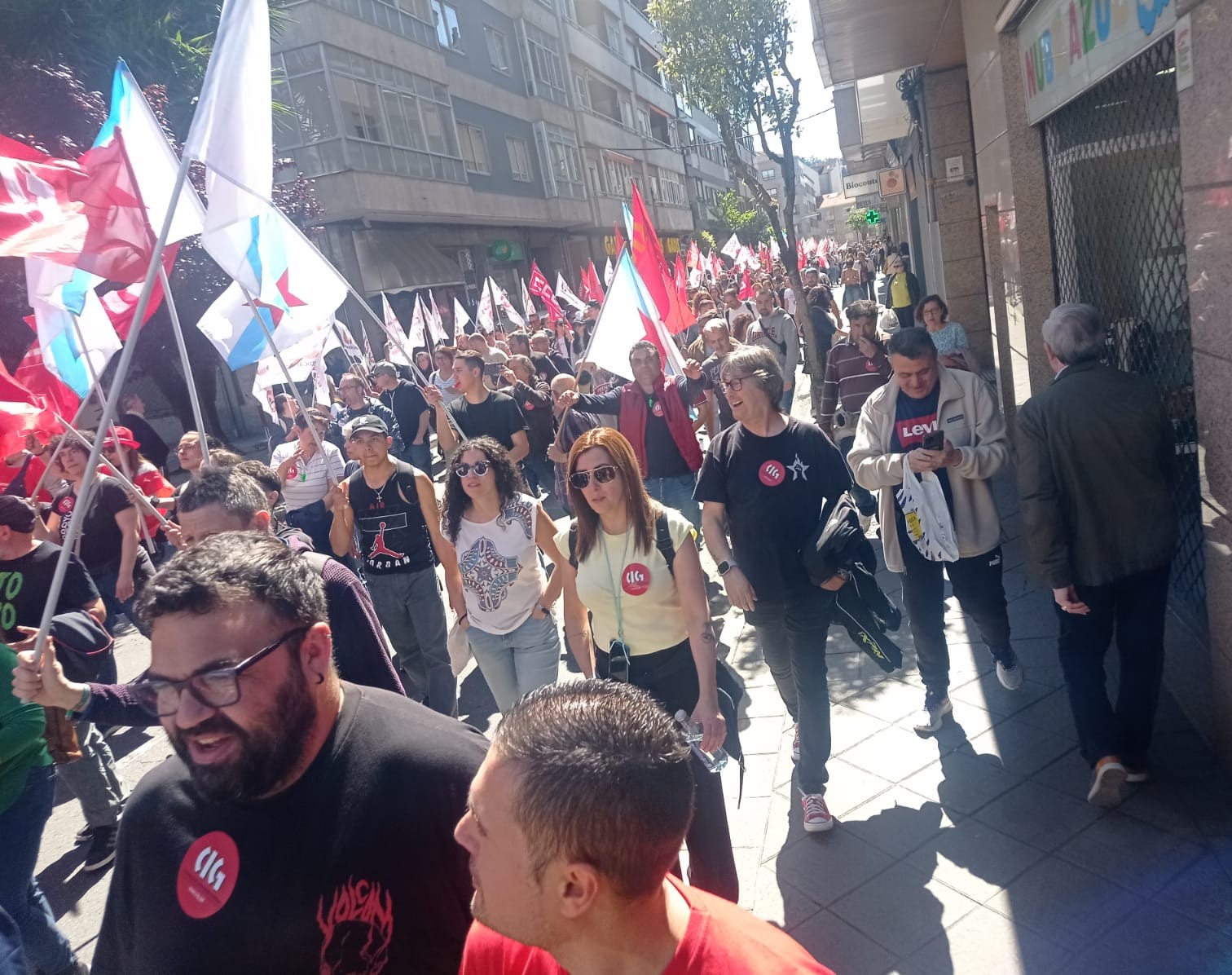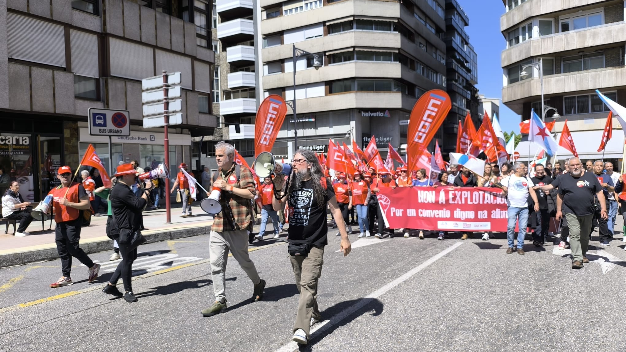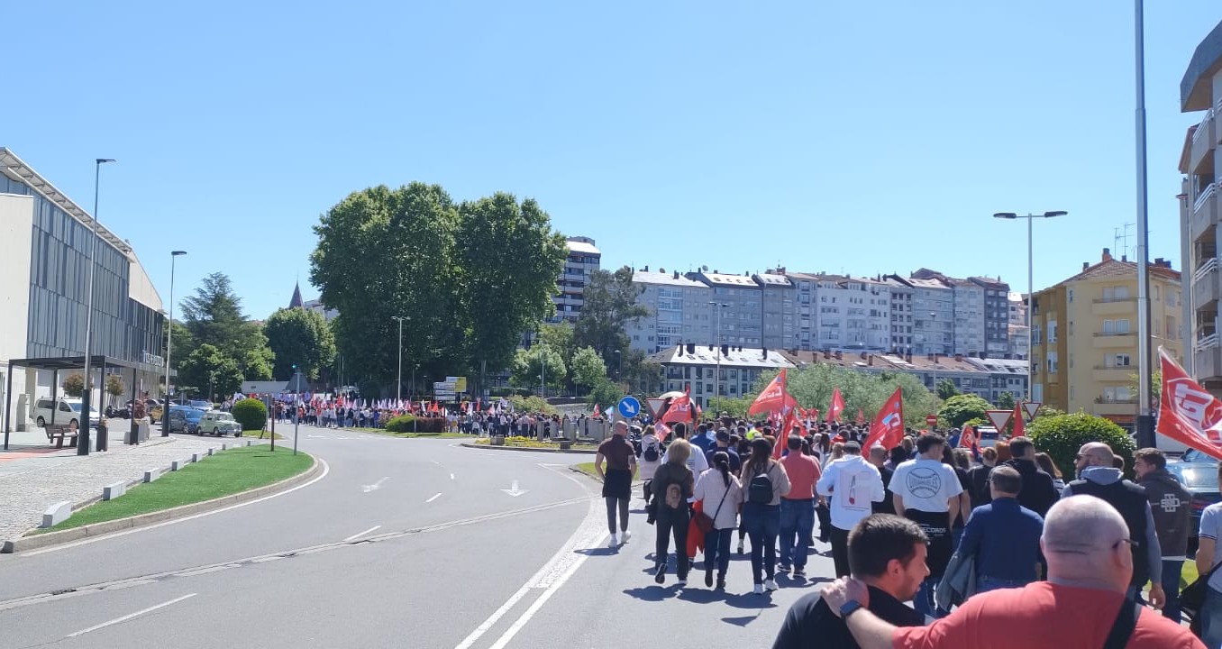 Ao mediodía tivo lugar unha multitudinaria manifestación na cidade, na que participaron máis de 1500 persoas ao berro de “Queremos negociar e non mendigar” e “O voso beneficio, o noso sacrificio”.