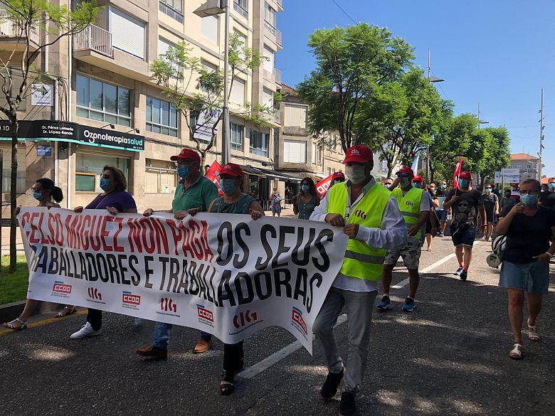 Traballadores e traballadoras de Celso Míguez están secundando este xoves unha xornada de folga para esixir o cobro dos salarios que a empresa lles adebeda, así como un plan de viabilidade que garanta a continuidade da actividade. Con motivo da folga, o persoal tamén realizou unha manifestación polas rúas de Pontevedra, onde a compañía ten a súa sede social.