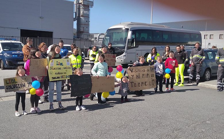 Hoxe, coincidindo coa hora da saída do persoal directivo da planta, as crianzas dos e das traballadoras sumáronse ás protestas laborais portando cartaces reivindicando os salarios que as súas nais e pais están deixando de percibir pola conflito que a empresa prolonga de maneira innecesaria coa súa postura intransixente.