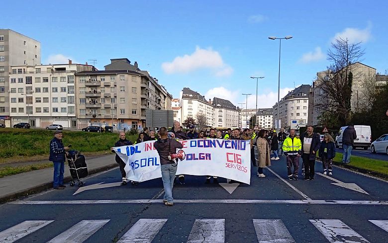 Ademais das mobilizacións realizadas pola comarca para dar visibilidade ao conflito, como a andaina deste venres ou as diversas caravanas de vehículos e concentracións no Lidl da Gándara, o persoal tamén mantén un piquete informativo continuo diante das instalacións de Narón.