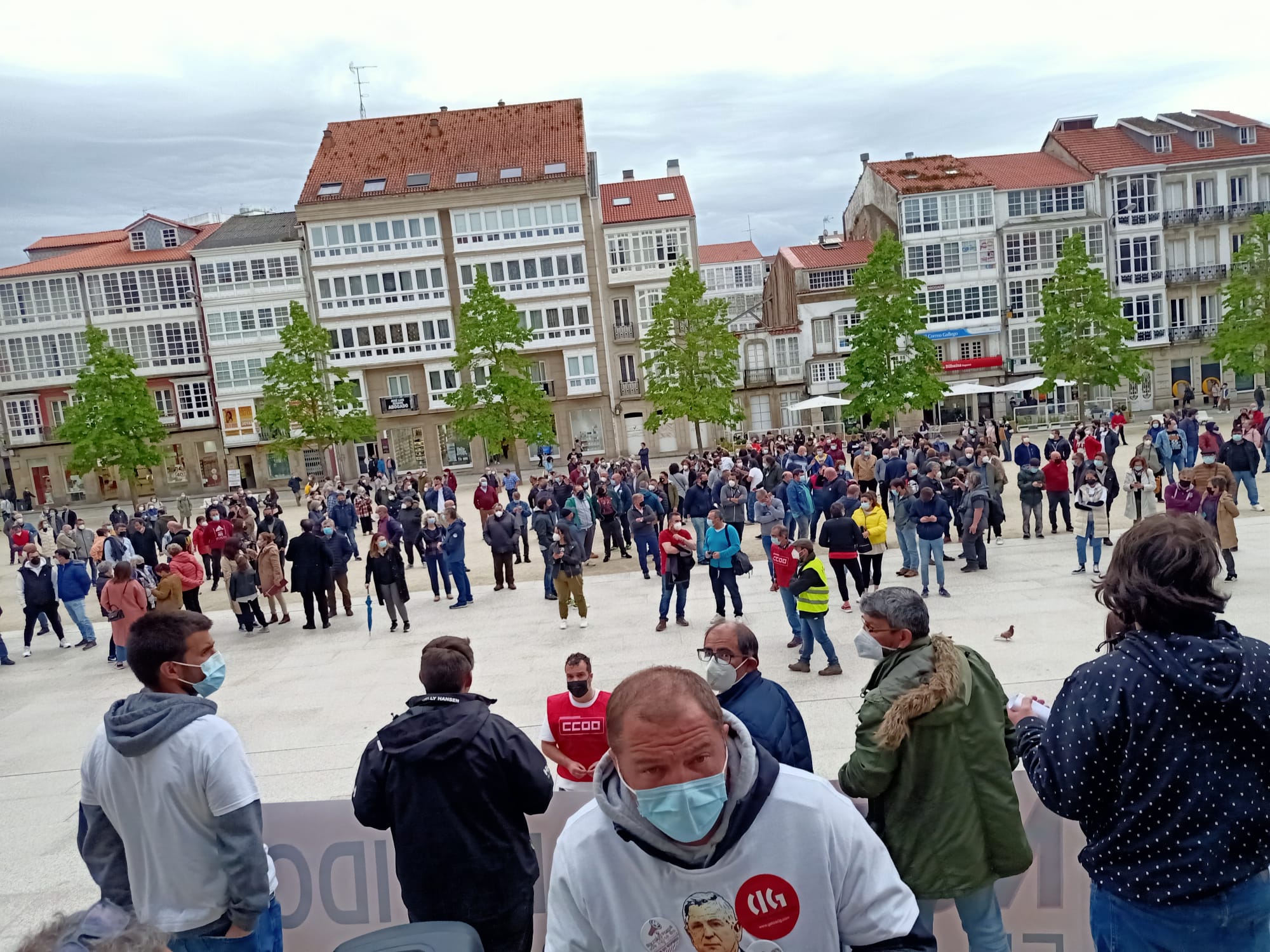 Por iso, na concentración reclamouse do goberno que proceda de inmediato á derrogar unha reforma laboral "que lle permite ás empresas facer o que lles pete" e que está deixando sen dereitos á clase traballadora.
