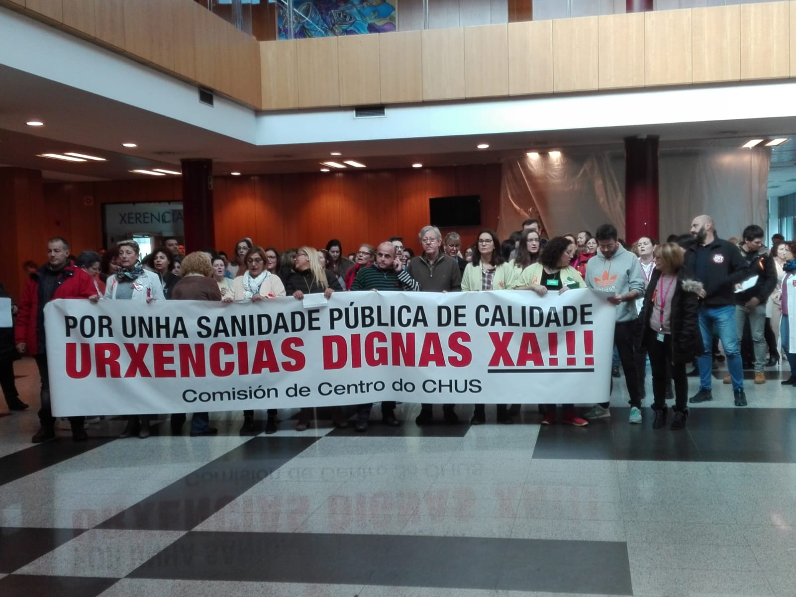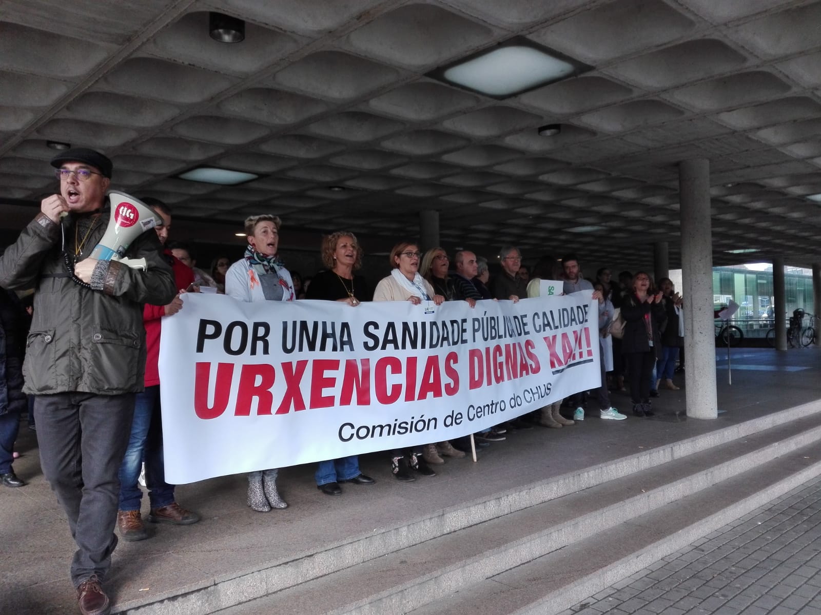 A concentración iniciouse ás 12:00 horas na porta de Urxencias e desde alí o persoal rodeou en manifestación o hospital, para rematar concentrándose no vestíbulo da entrada principal do centro sanitario. A mobilización coincidiu coa primeira xornada de folga indefinida convocada desde as 8:00 da mañá deste luns, até as 8:00 horas do vindeiro xoves, para a que o SERGAS decretou un 100% de servizos mínimos.