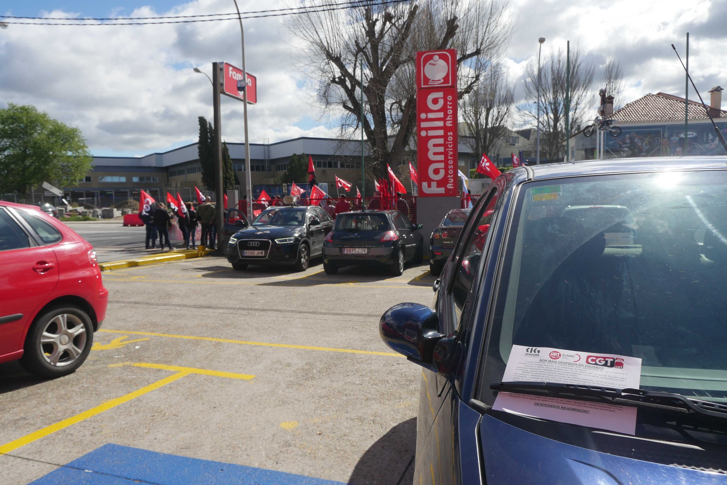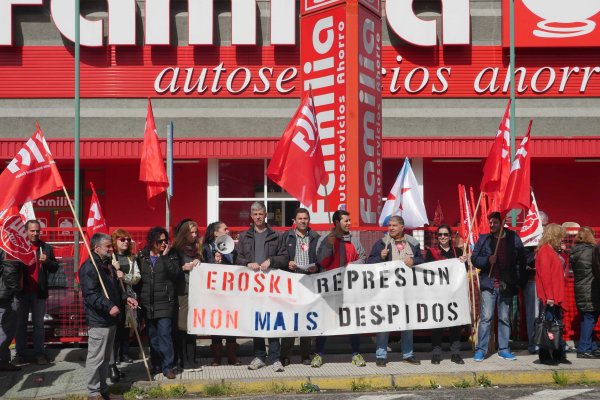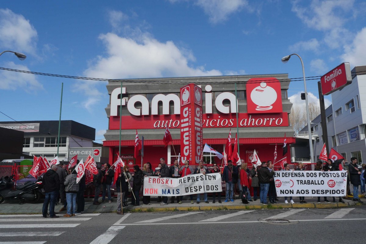 Nesta ocasión as centrais optaron por concentrarse ás portas do supermercado Familia -pertencente ao grupo vasco- situado en San Andrés de Comesaña, onde despregaron varias faixas e permaneceron de 11.00 a 13.00 horas berrando consignas contra a decisión da empresa de rescindirlle o contrato a sete traballadores/as fixo/as e con antigüidade na compañía para substituílos/as por persoal eventual.