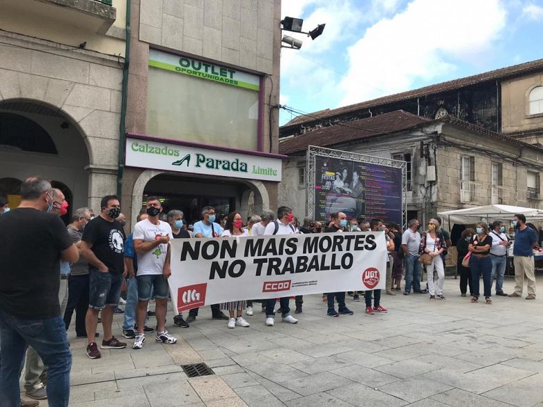 As centrais sindicais CIG, CCOO e UGT desenvolveron hoxe protesta conxunta no Porriño para denunciar a quinta morte en accidente de traballo no que vai de ano na comarca. Coa concentración celebrada ao mediodía diante do Concello reclaman máis seguridade e alertan sobre a precariedade laboral que está detrás deste tipo de sucesos.