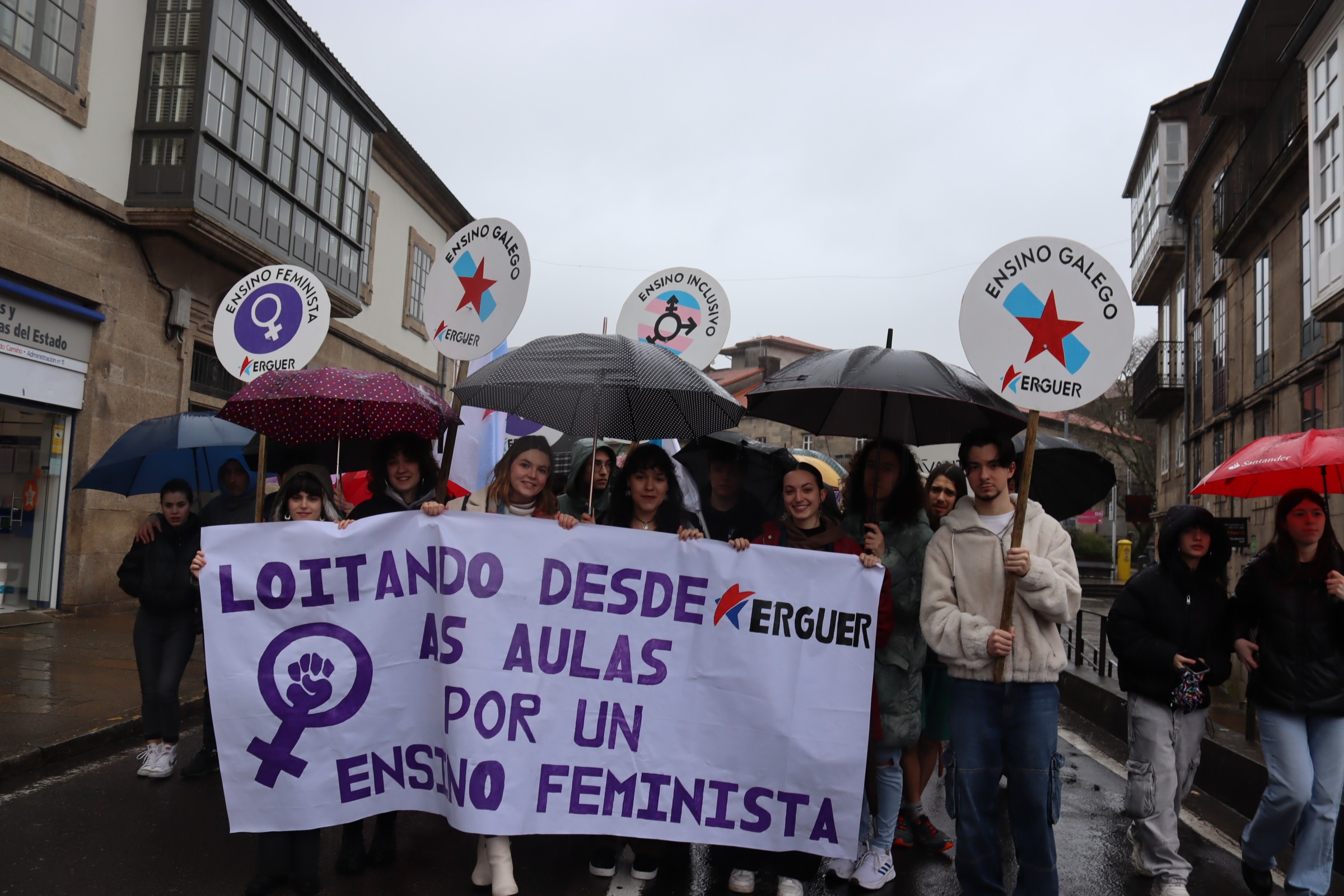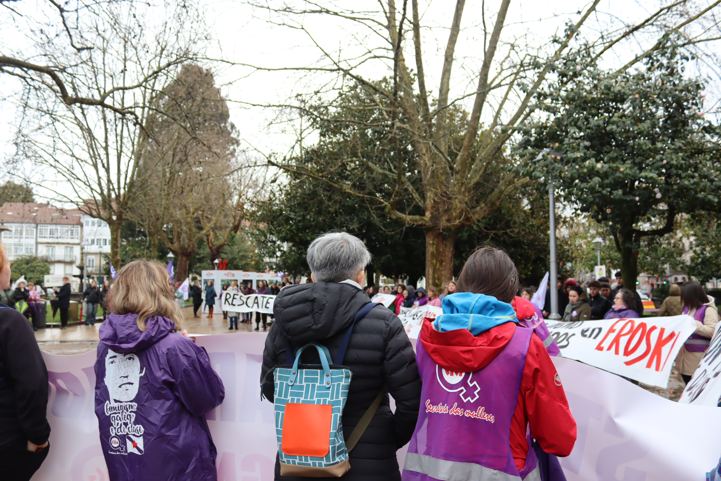 Queremos salarios que nos permitan o acceso á alimentación, á vivenda, á enerxía e a todos os bens que posibilitan condicións de vida acordes cos tempos. Queremos que os coidados sexan compartidos e que as institucións doten de servizos públicos de calidade para que non pesen como lousas sobre os nosos ombros. Reivindicamos o desfrute do tempo para o descanso, para o ocio, para o autocoidado, porque xa non nos queda despois da dobre ou tripla xornada.
