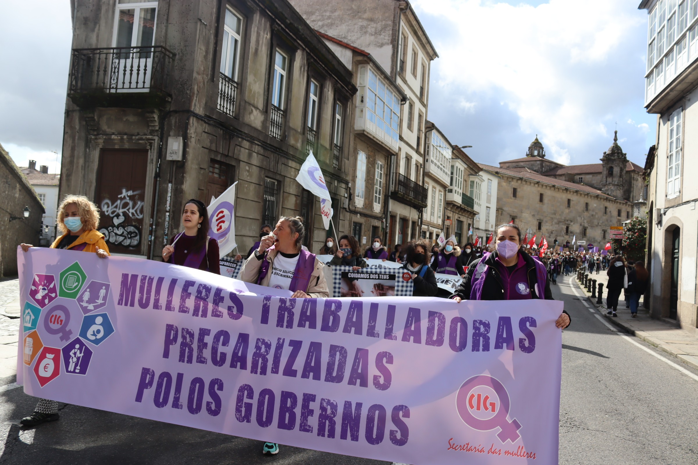 A secretaria das Mulleres da CIG, Nicolasa Castro, subliña que para a central sindical o 8 de Marzo segue a ser unha data de loita e chamou a reivindicar “unha vida digna e en igualdade para as traballadoras de calquera idade e oficio”, tamén para as máis novas, que “seguen emigrando mentres padecemos unha crise demográfica insoportábel”.