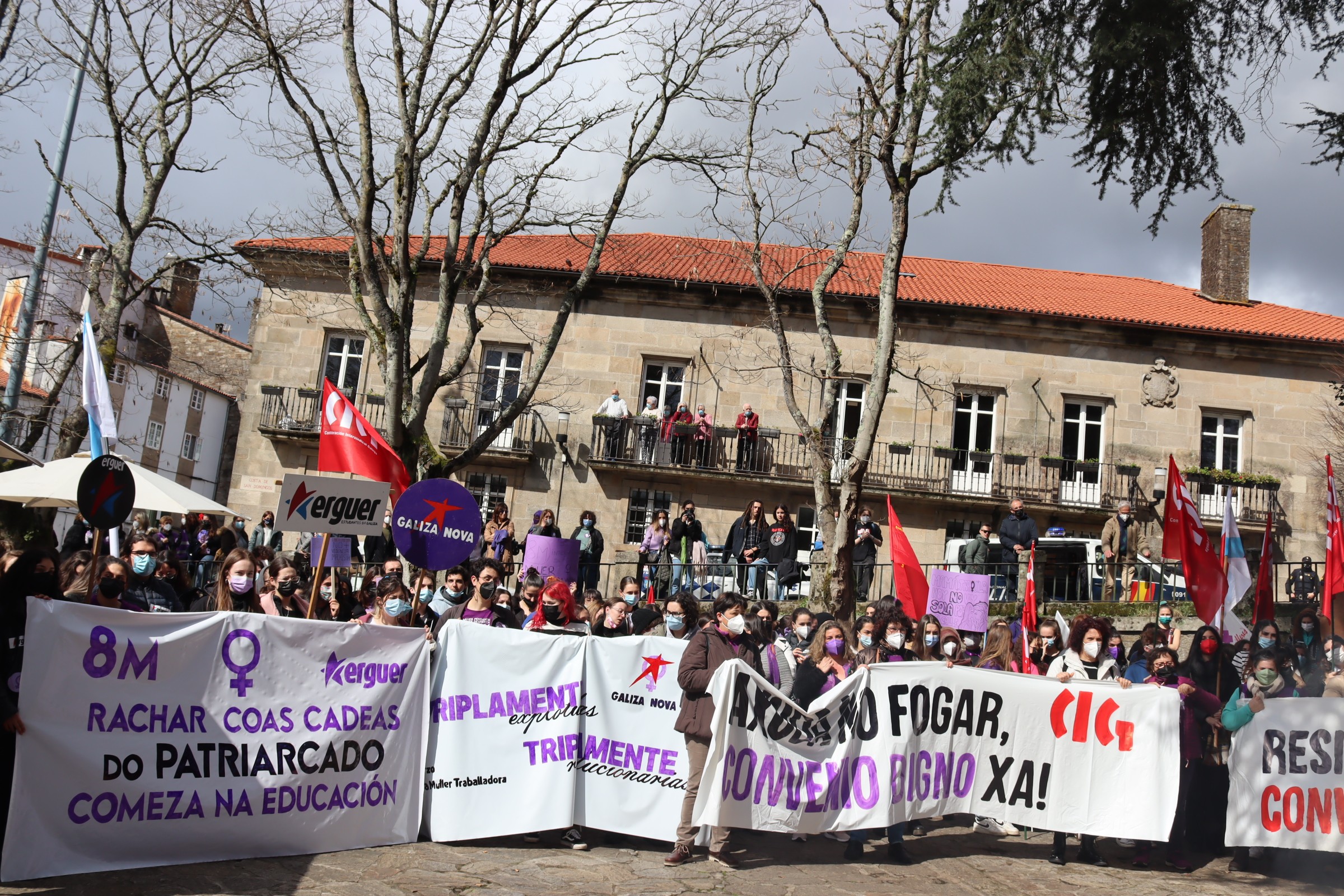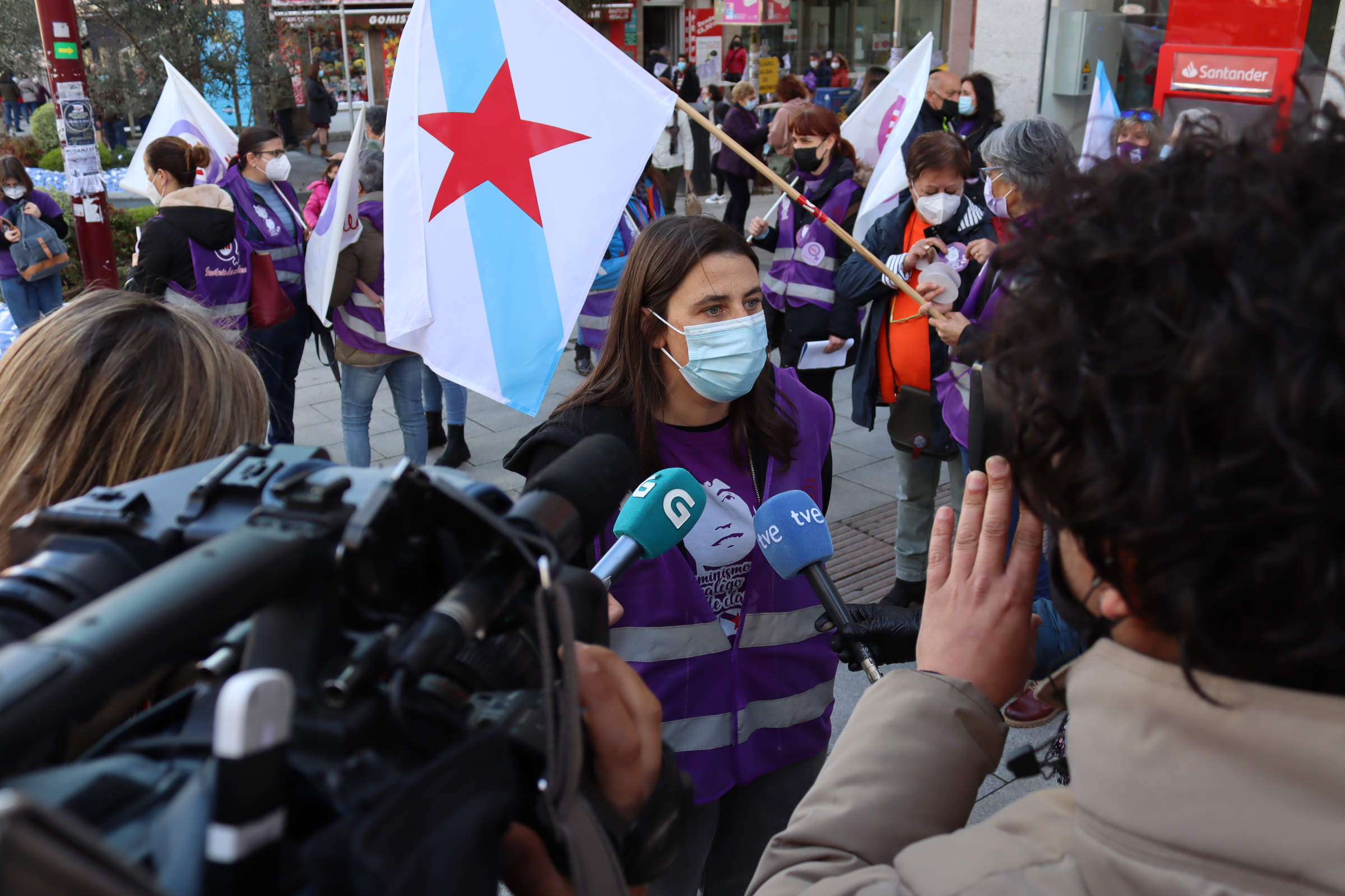 Rematou aclarando que “fronte a quen poida pensar que a discriminación e a desigualdade que padecemos as mulleres é algo inmutábel que pasa por ciencia infusa, hai que poñerlle nome e apelidos a quen ten a responsabilidade de rachar con esa tendencia. O patriarcado ten moito cómplice agochado nas mesmas institucións que hoxe, 8 de marzo, enchen as súas axendas de actos pola igualdade. E vai sendo moita hora de desenmascarar a hipocrisía e poñerlles nome. Por iso hoxe estamos aquí: mobilizámonos contra quen ten a responsabilidade de garantir os nosos dereitos. Esiximos que esta situación de desigualdade remate xa”.