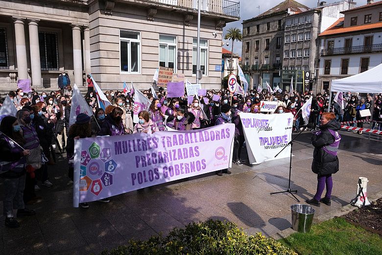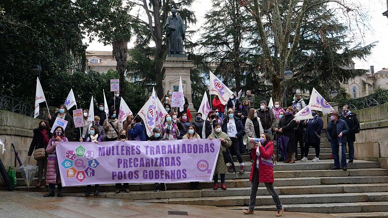 Castro Monteiro lembrou que aínda que nos paros e nas folgas de mulleres de 2018, 2019 e 2021 se puxo o foco da reivindicación na valorización dos traballos de coidados, e que a pandemia evidenciou o carácter esencial destas tarefas, desempeñadas maioritariamente por mulleres, non se tomaron medidas para eliminar a precariedade "que é consubstancial á maior parte destes traballos: empregadas do fogar, traballadoras de centros da terceira idade, servizo de atención a domicilio…”.