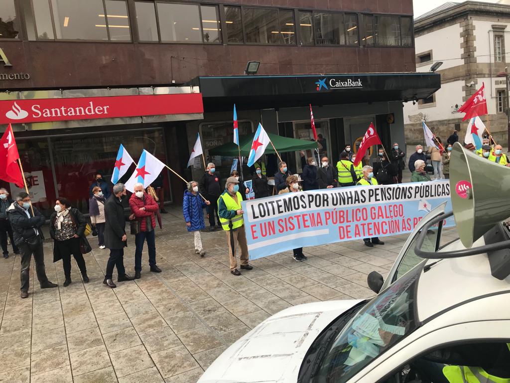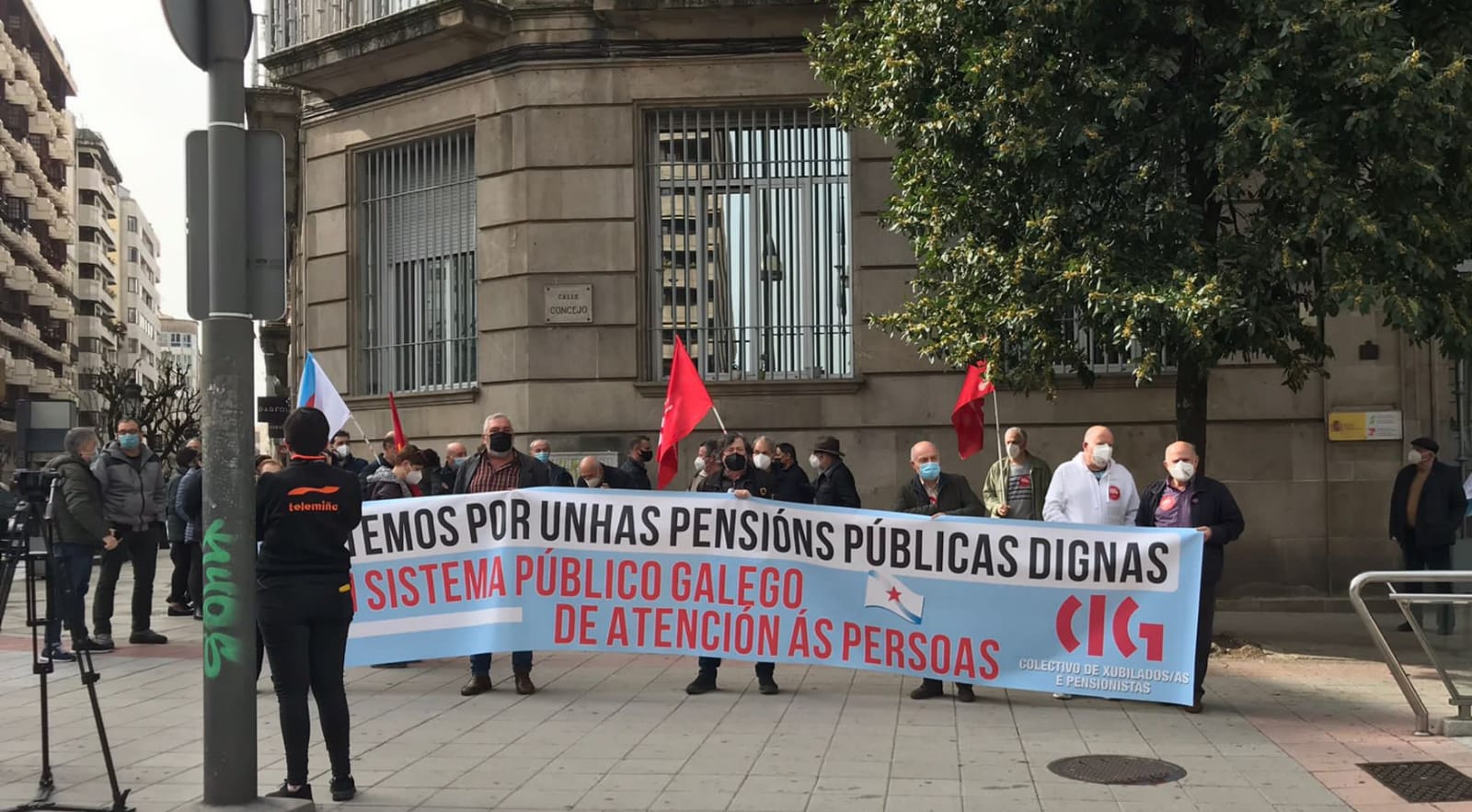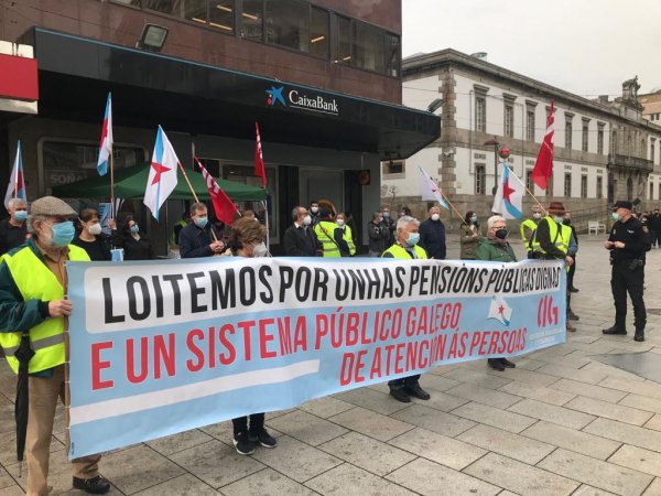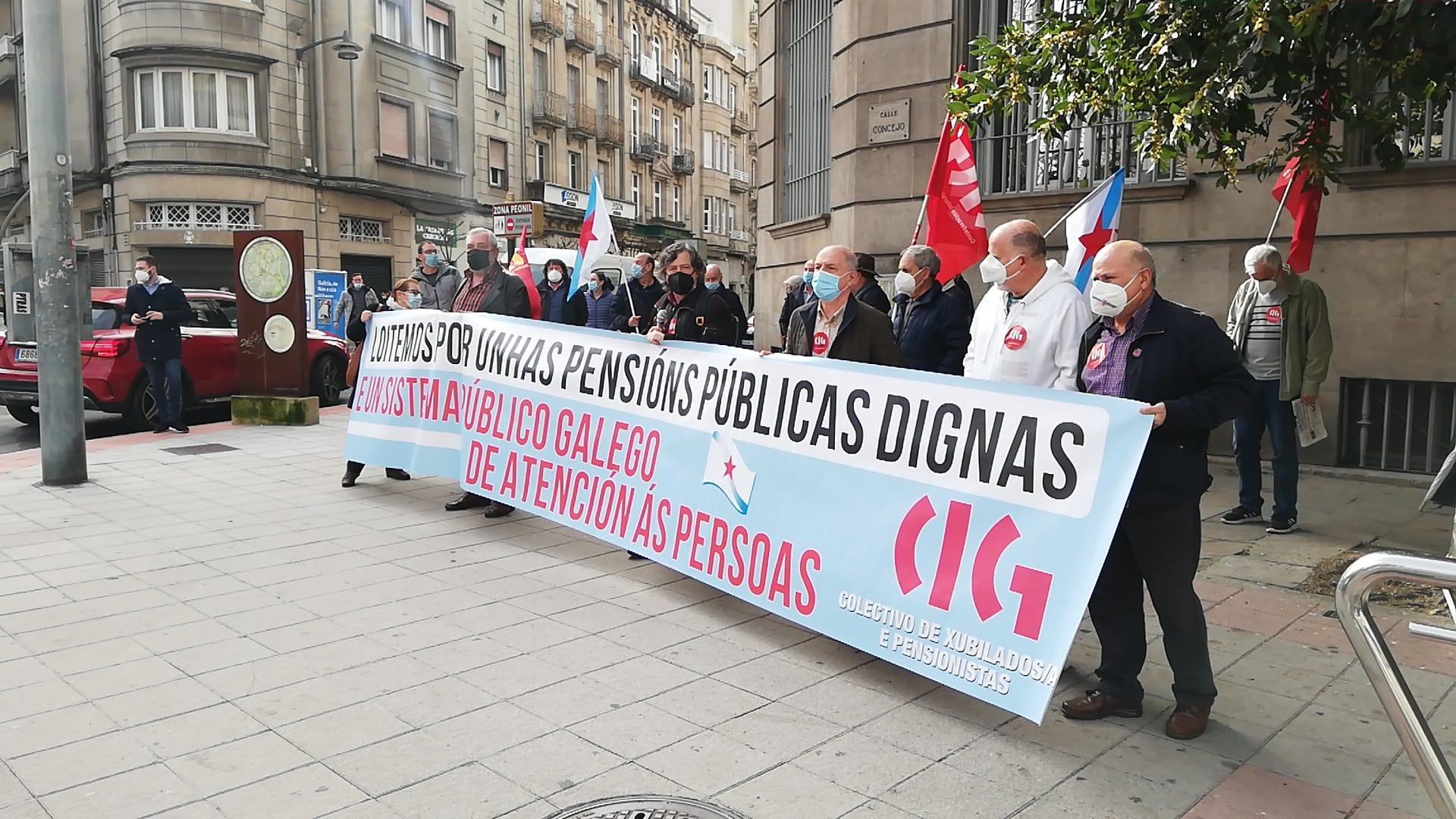 O colectivo denuncia que, segundo os últimos datos, a pensión media galega é de 865,94€ mentres que a pensión media no Estado é de 1.017,97€ o que sitúa a Galiza no posto 19 das 20 comunidades do estado español, só por diante de Estremadura.