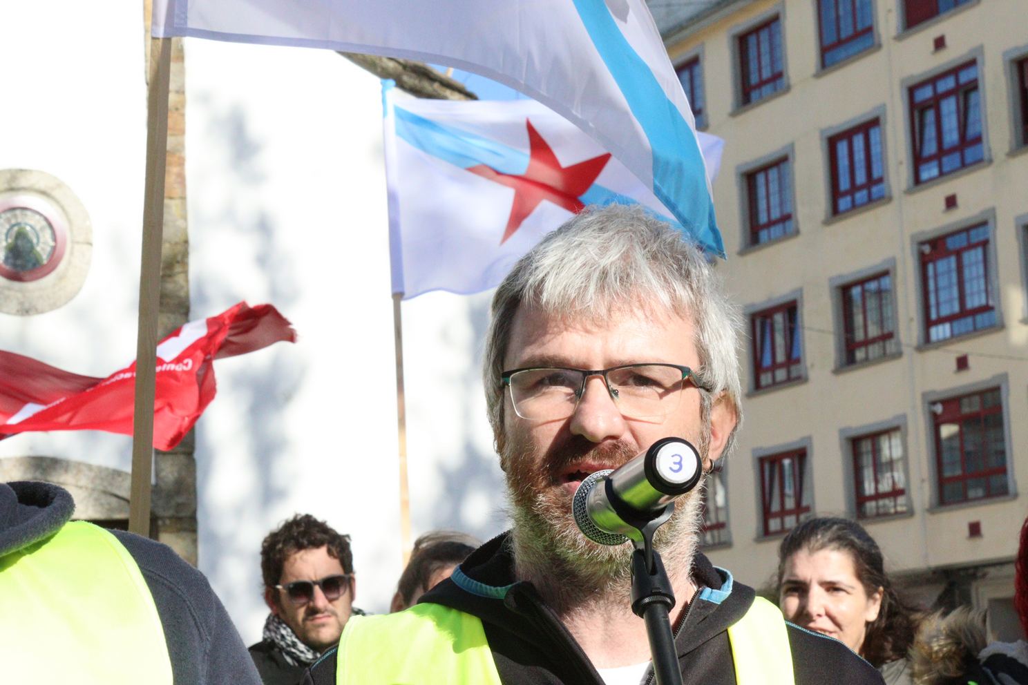 Ao remate da manifestación, xunto ao representante da CIG, Alberte Amado, tomaron a palabra Fernando Branco, e traballadoras e traballadoras de sectores e empresas en crise: Raquel Fraga do comercio local, Celso Barro, dunha auxiliar de Endesa, Zeltia Gato, traballadora de Endesa, e Daniel Pena, presidente do comité de Einsa Print.