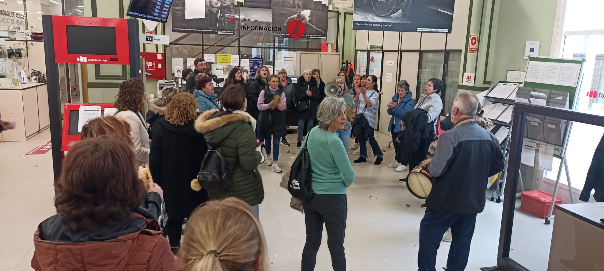 Á espera da resposta patronal, as traballadoras tamén acordaron continuar coas mobilizacións diarias e coa caravana reivindicativa para dar visibilidade á súa loita e pedir a solidariedade da clase traballadora. Este venres tiñan previsto protestar no interior do Concello, pero como non lles permitiron permanecer dentro das dependencias municipais, as traballadoras fixeron unha sentada nos soportais da Casa Consistorial.