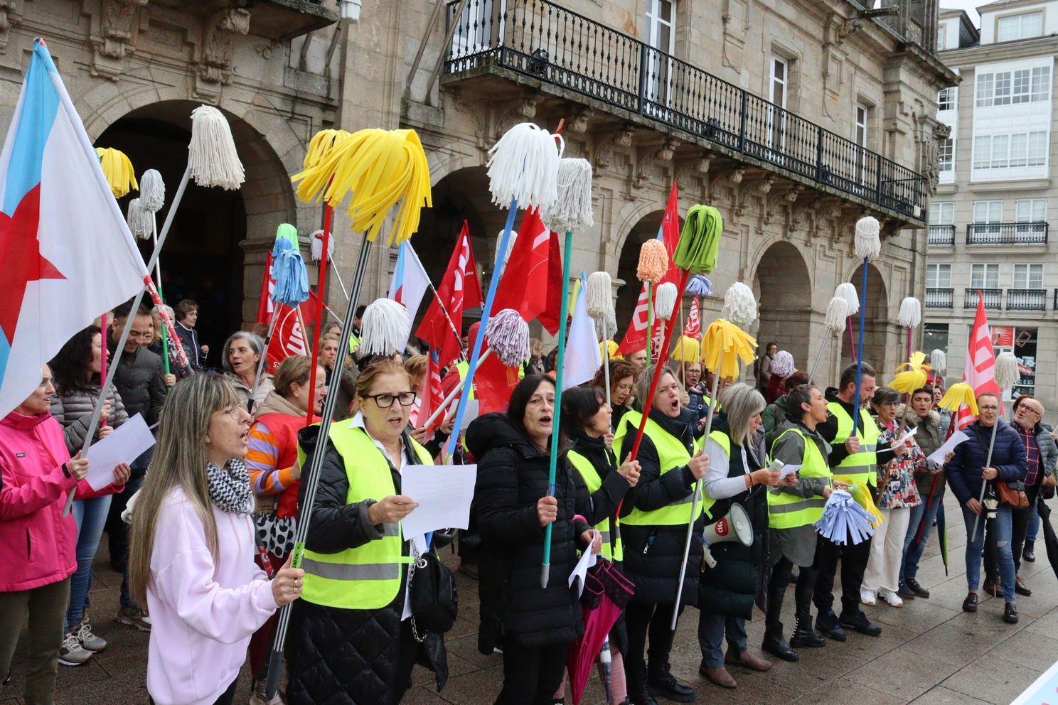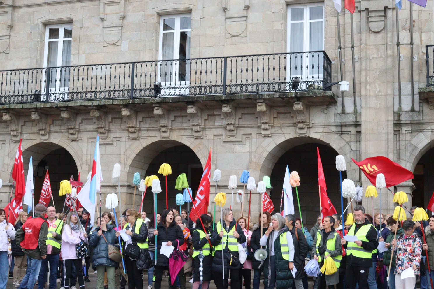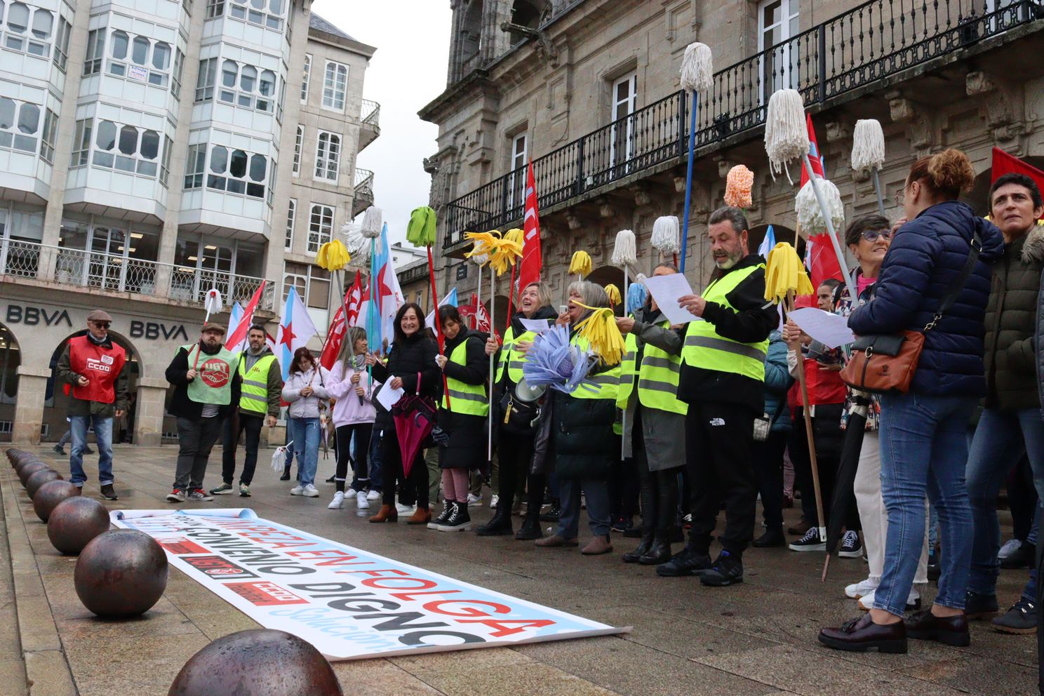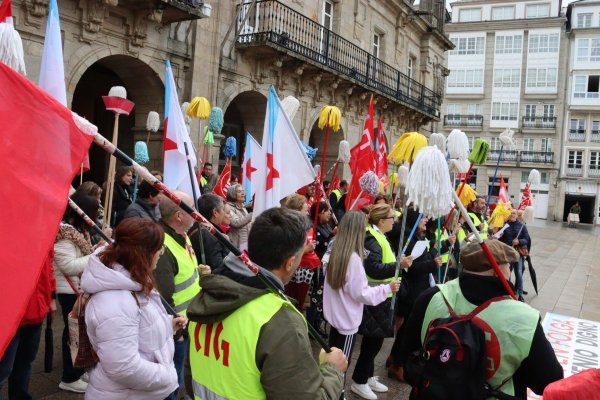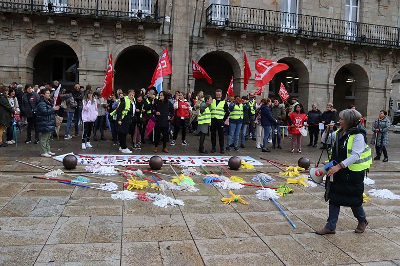 As traballadoras da limpeza tiran as fregonas e lánzanlle un recado á patronal: se non asinades, non limpamos