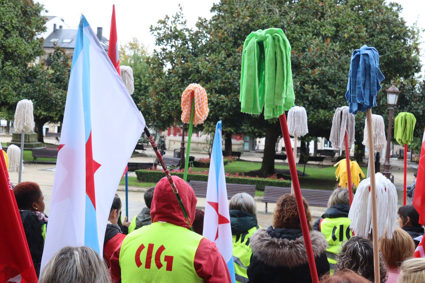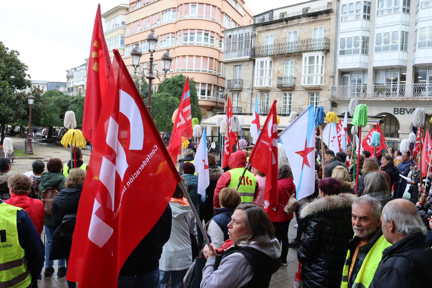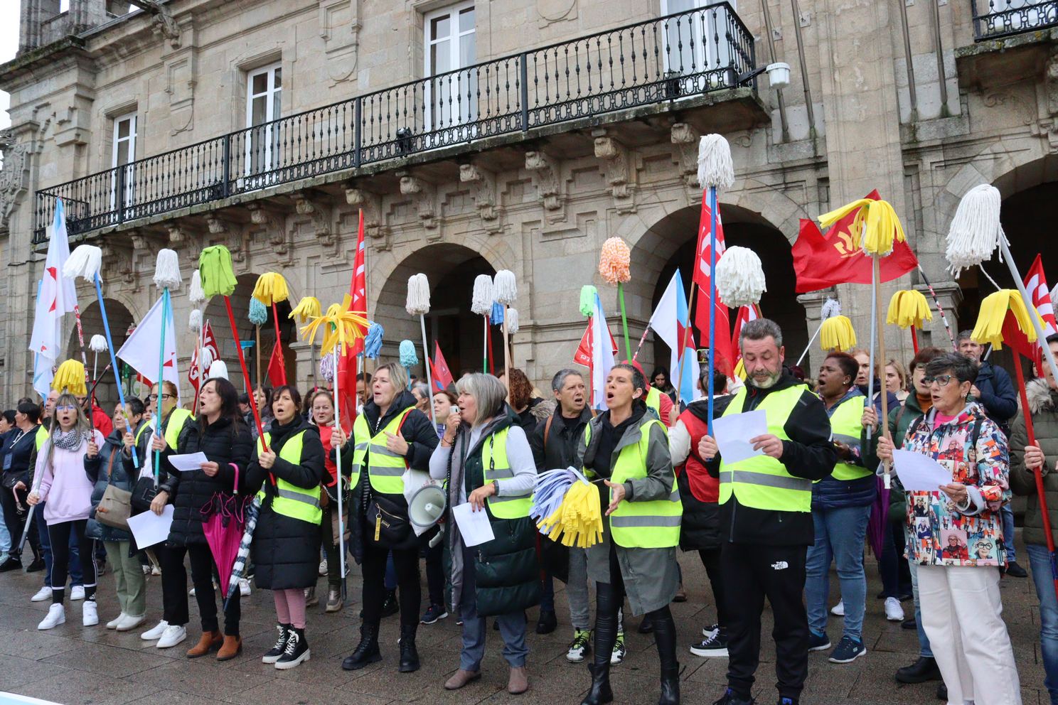 As traballadoras da limpeza tiran as fregonas e lánzanlle un recado á patronal: se non asinades, non limpamos