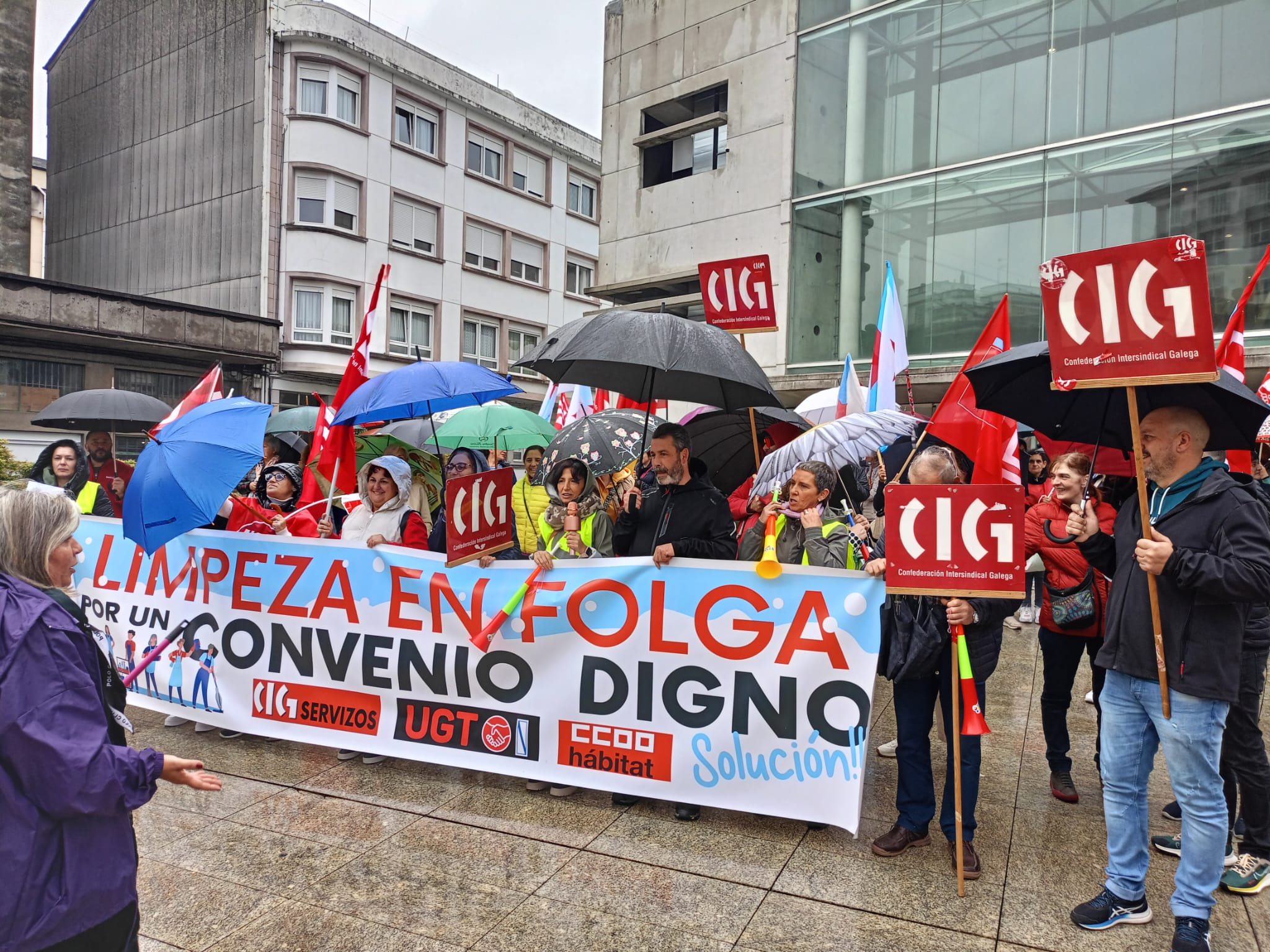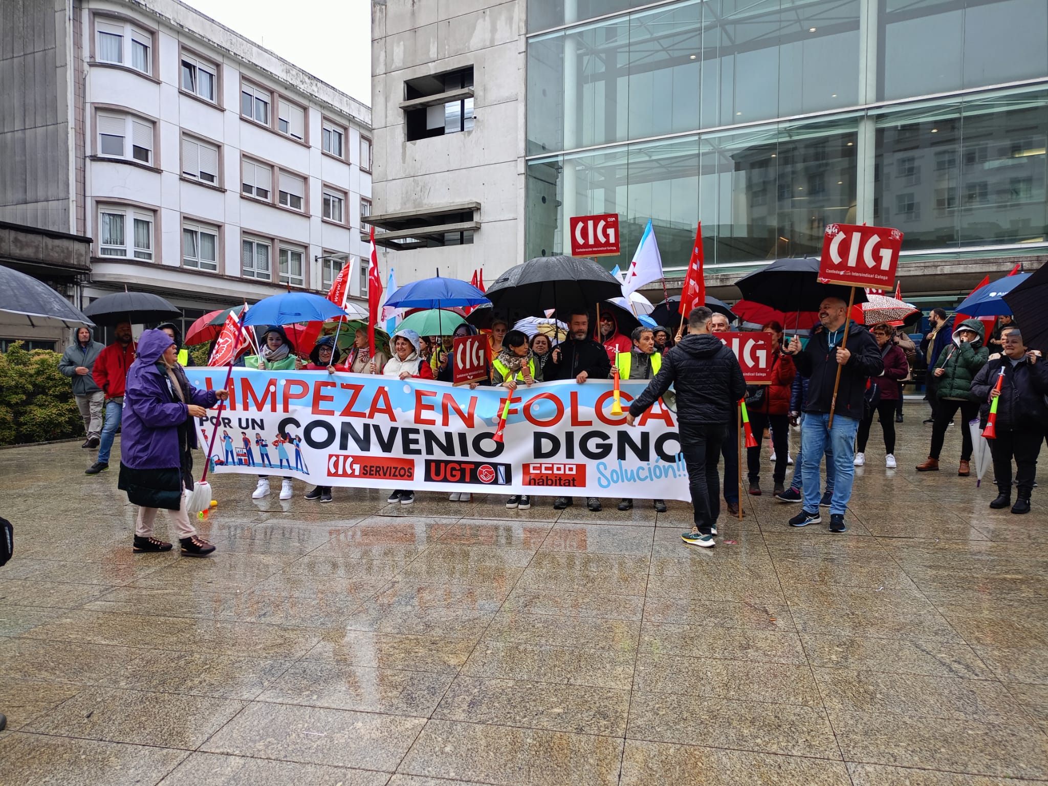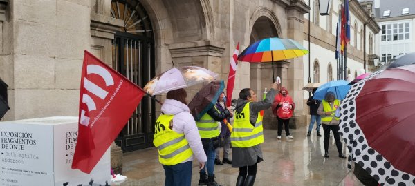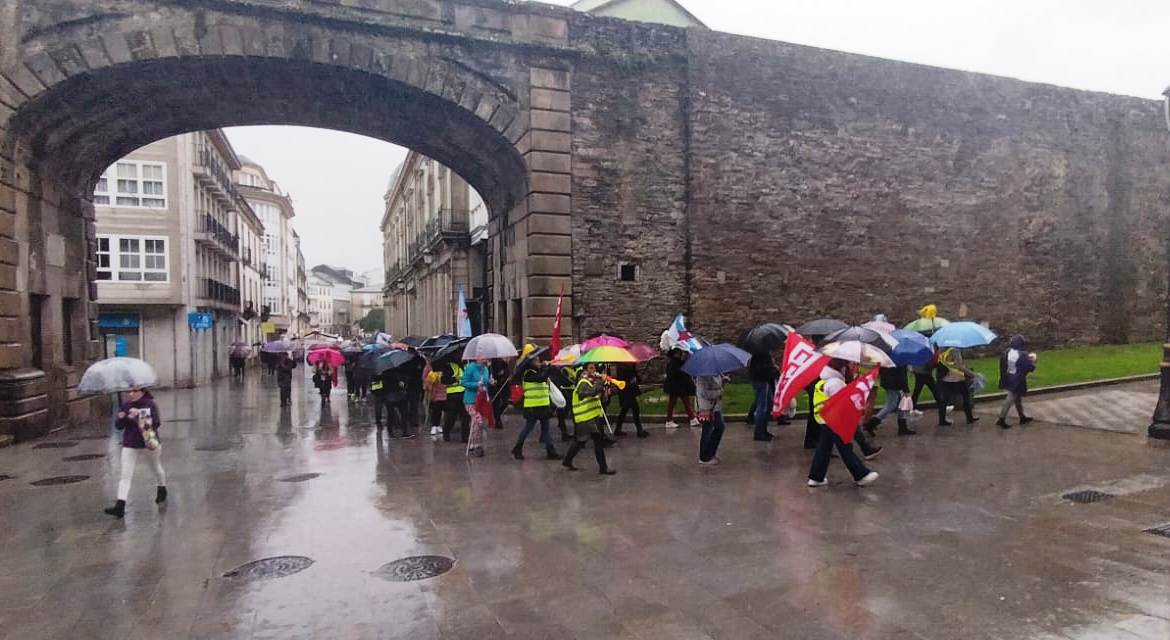 Cos ánimos intactos e malia a intensa e persistente choiva, as traballadoras fixeron este xoves unha ruada reivindicativa que pasou polos edificios máis significativos das diferentes administracións públicas, onde cantaron cancións alusivas ao conflito e reclamaron mellores condicións laborais e salarios xustos. Porque malia todas as dificultades, as traballadoras refírmanse na súa loita porque "que chova ou que non, seguimos ao pé do canón".