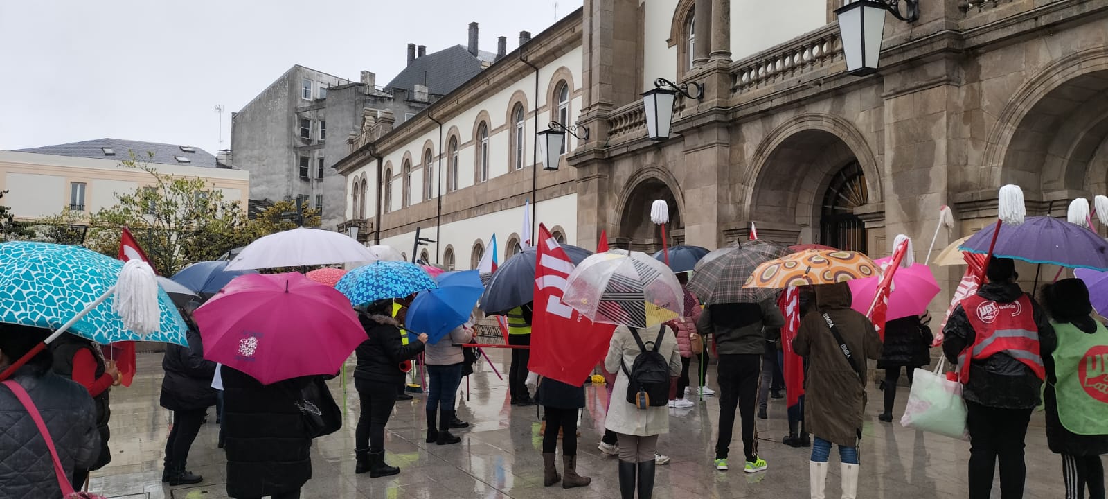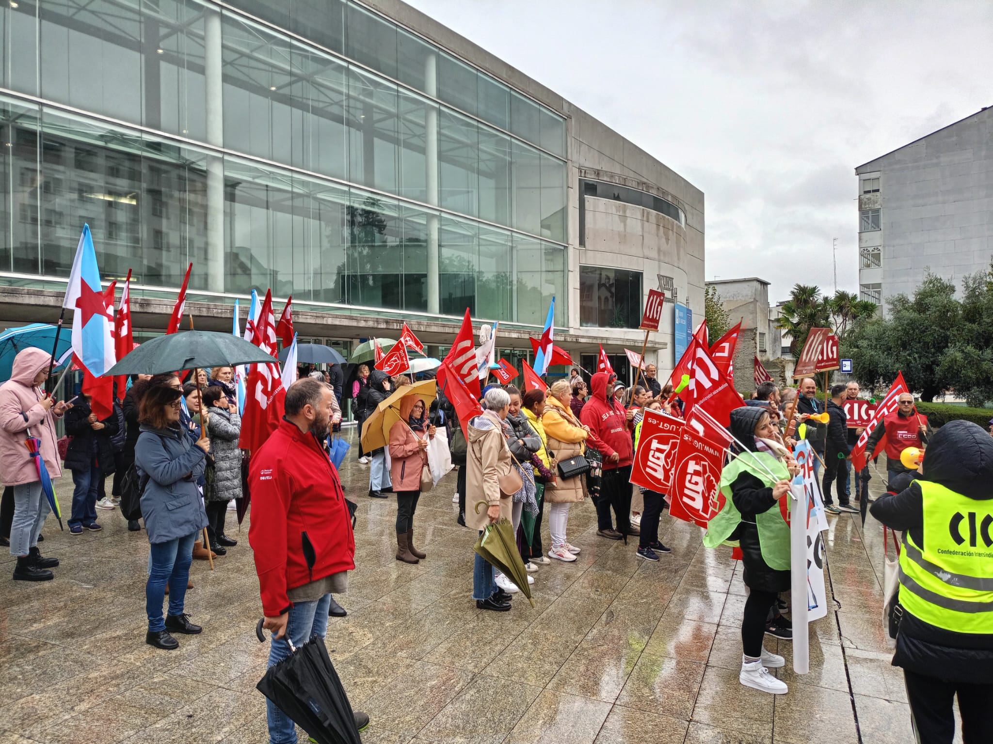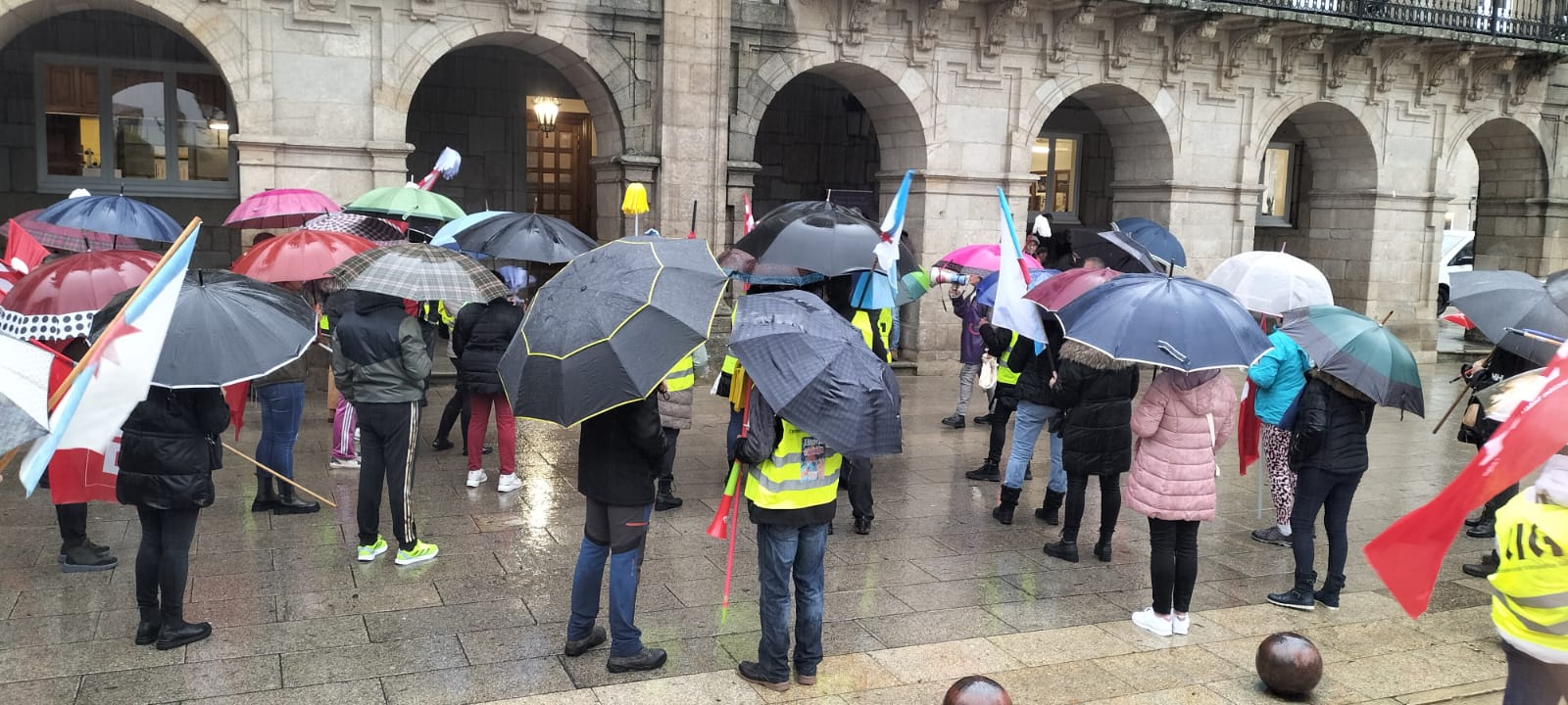 Cos ánimos intactos e malia a intensa e persistente choiva, as traballadoras fixeron este xoves unha ruada reivindicativa que pasou polos edificios máis significativos das diferentes administracións públicas, onde cantaron cancións alusivas ao conflito e reclamaron mellores condicións laborais e salarios xustos. Porque malia todas as dificultades, as traballadoras refírmanse na súa loita porque "que chova ou que non, seguimos ao pé do canón".