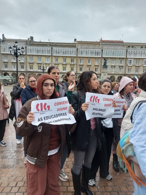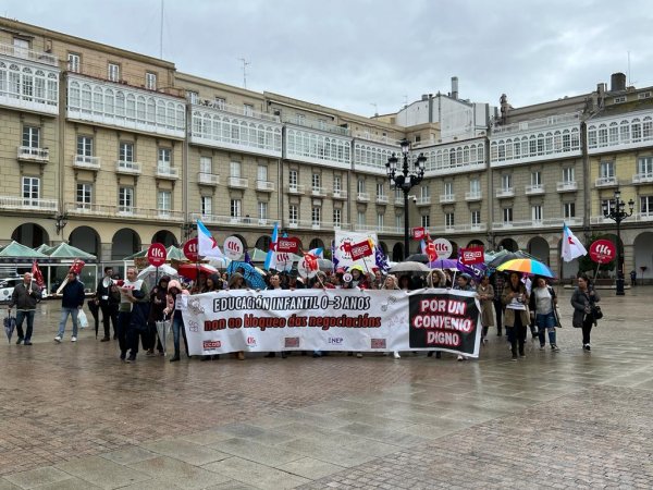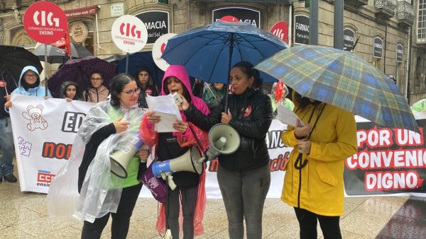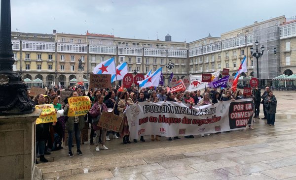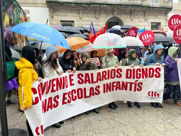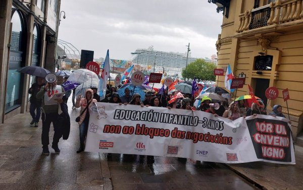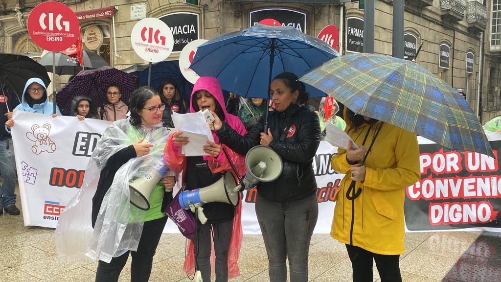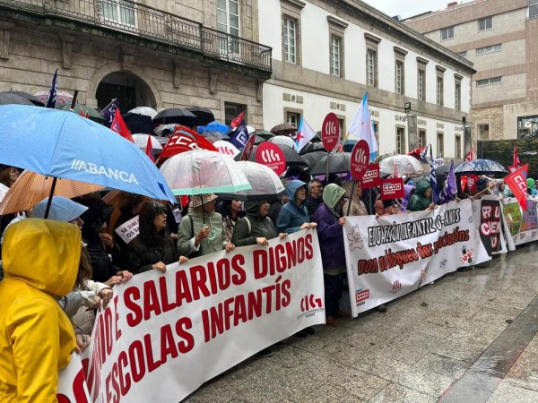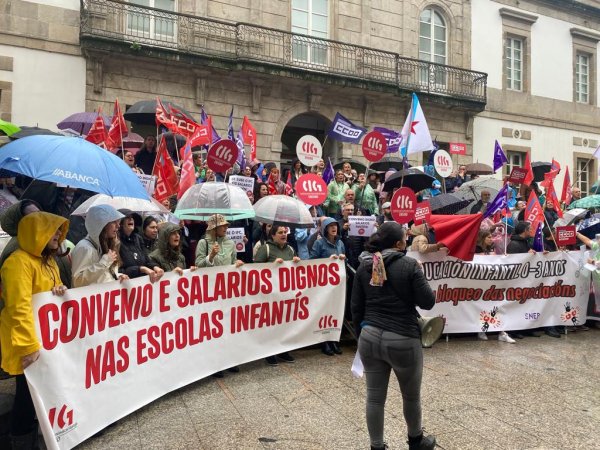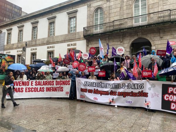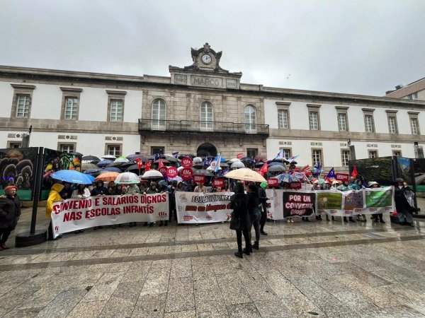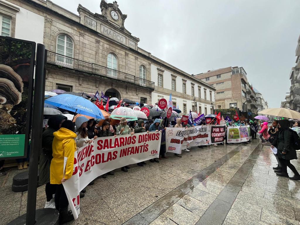 Centos de traballadoras das escolas infantís privadas e de xestión indirecta, na etapa 0-3 anos, volveron saír á rúa este mércores para reclamar un convenio colectivo xusto, con salarios e condicións laborais dignas e que se recoñeza o valor do seu traballo. Nesta segunda xornada de folga, que volve rexistrar un seguimento de arredor do 80%, as traballadoras manifestáronse polas cidades de Vigo e da Coruña exixíndolle á patronal o desbloqueo das negocacións dun convenio que xa foi superado polo SMI.