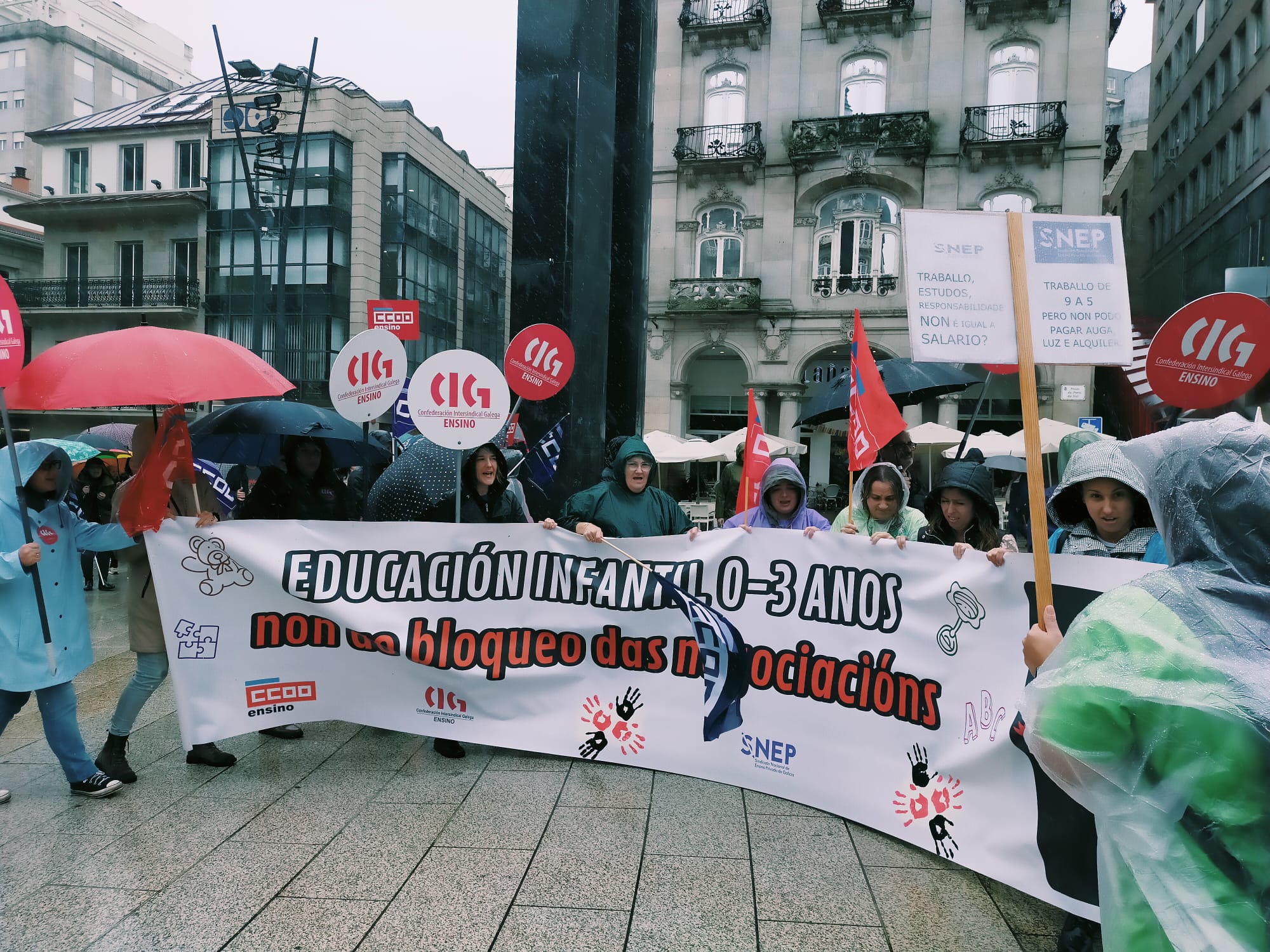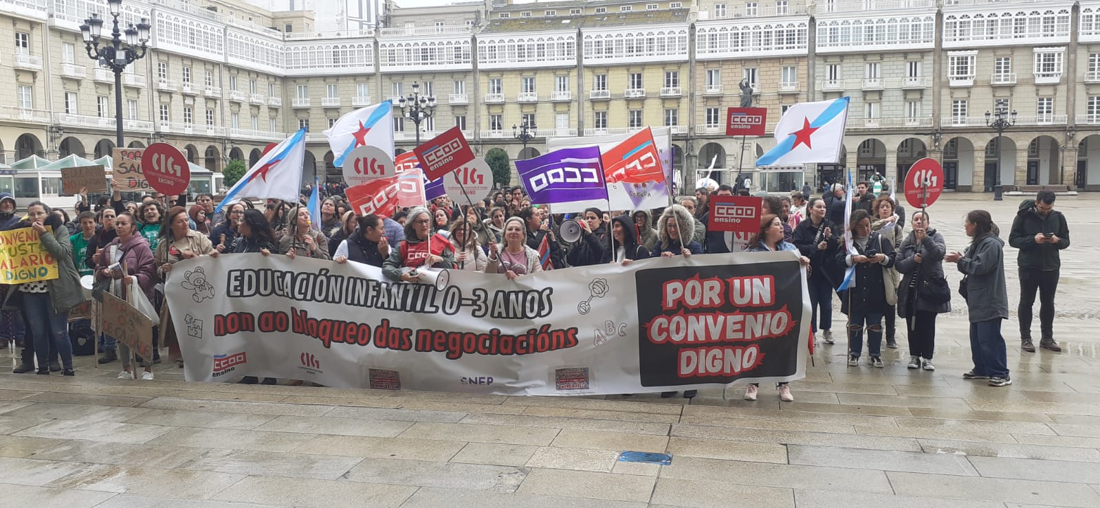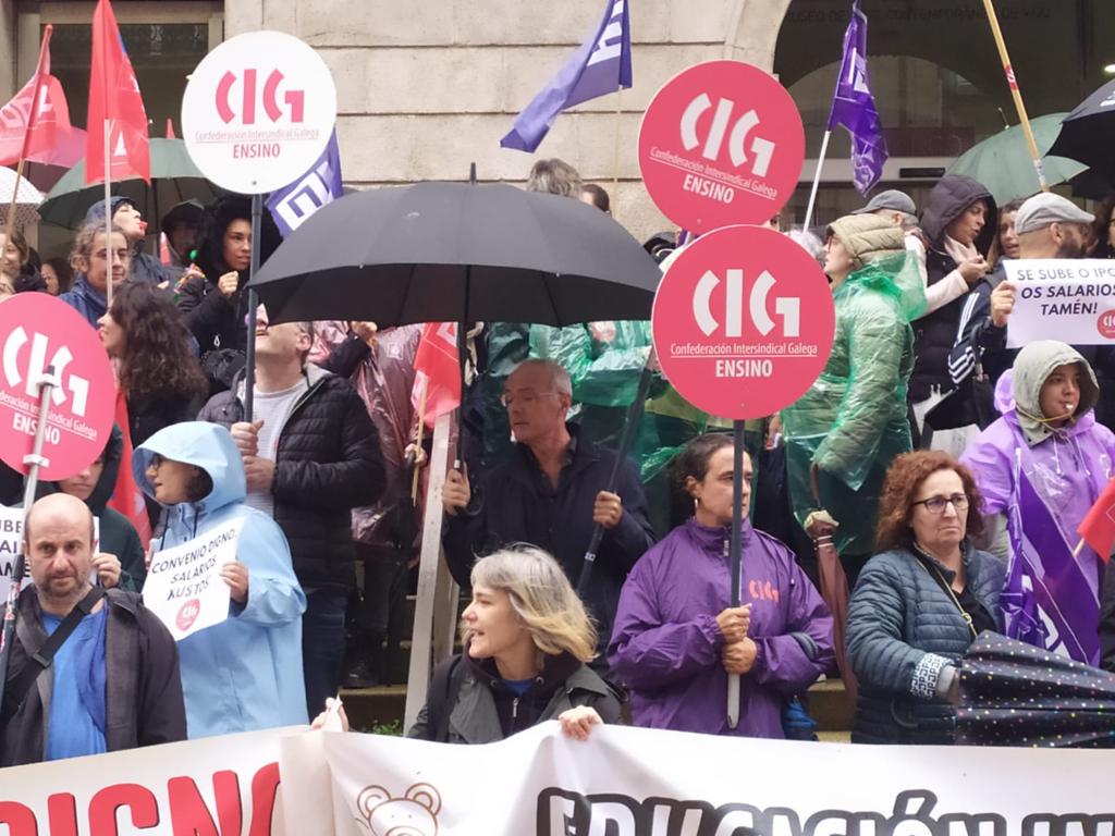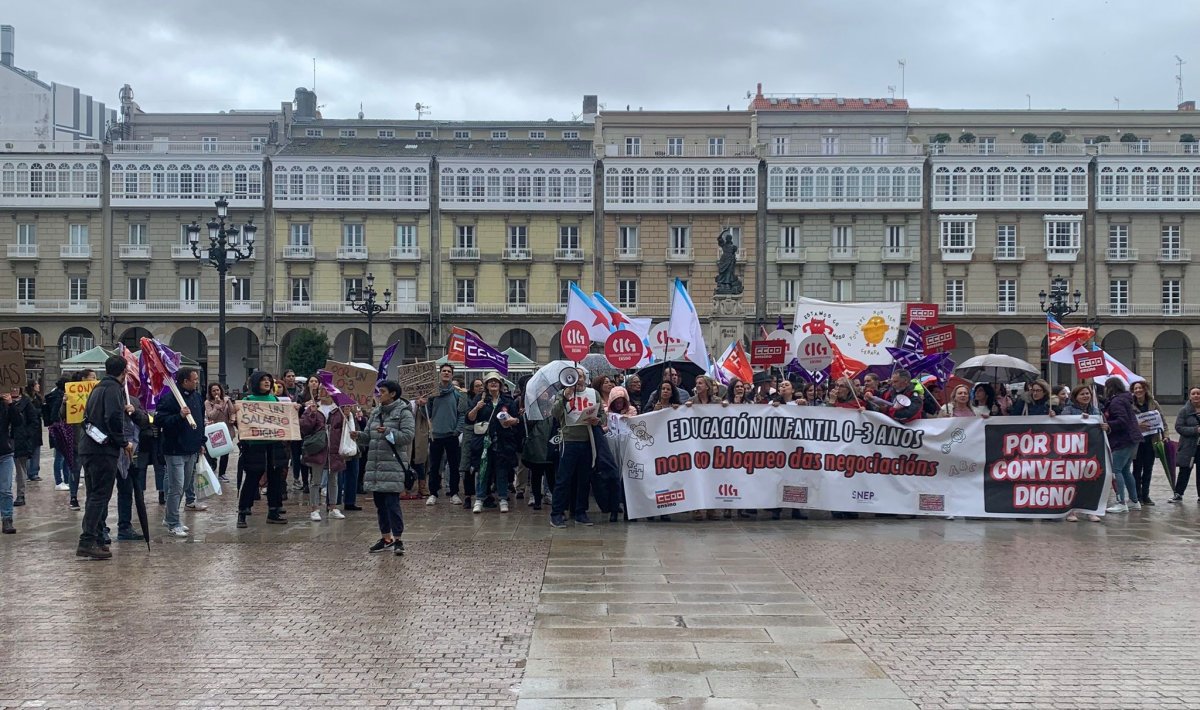 Centos de traballadoras das escolas infantís privadas e de xestión indirecta, na etapa 0-3 anos, volveron saír á rúa este mércores para reclamar un convenio colectivo xusto, con salarios e condicións laborais dignas e que se recoñeza o valor do seu traballo. Nesta segunda xornada de folga, que volve rexistrar un seguimento de arredor do 80%, as traballadoras manifestáronse polas cidades de Vigo e da Coruña exixíndolle á patronal o desbloqueo das negocacións dun convenio que xa foi superado polo SMI.