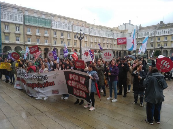 Ao remate das mobilizacións, varias traballadoras deron lectura a un comunicado no que denuncian que "o noso salario non supera o SMI e non alcanza o 60% do salario medio. Segundo a Carta Social Europea, somos traballadoras pobres". Reivindicaron unhas condicións salariais acordes co traballo que desenvolven, a formación que se lles exixe e a responsabilidade que teñen que asumir no seu día a día, "xa que non existe unha correlación entre aptitudes e retribucións e, ademais, subxace unha discriminación ao colectivo polo mero feito de ser maioritariamente feminino".