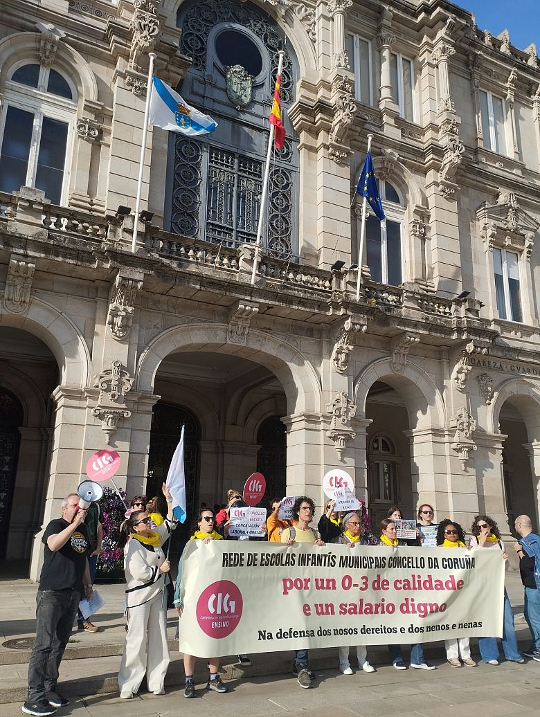As traballadoras da rede de escolas infantís municipais da Coruña e a CIG-Ensino volven á rúa para amosar o seu descontento co Goberno local e, en concreto, coa Concellaría de Educación. O responsábel da área, Juan Borrego, na xuntanza mantida coas traballadoras a comezos do mes de marzo, comprometérase a darlles unha resposta xustificada ás súas reivindicacións en dúas semanas, pero, pasado case un mes a resposta é “que mentres non estea publicado o XIII convenio estatal no BOE, os servizos xurídicos non van facer informe e, polo tanto, non haberá dita reposta xustificada”.