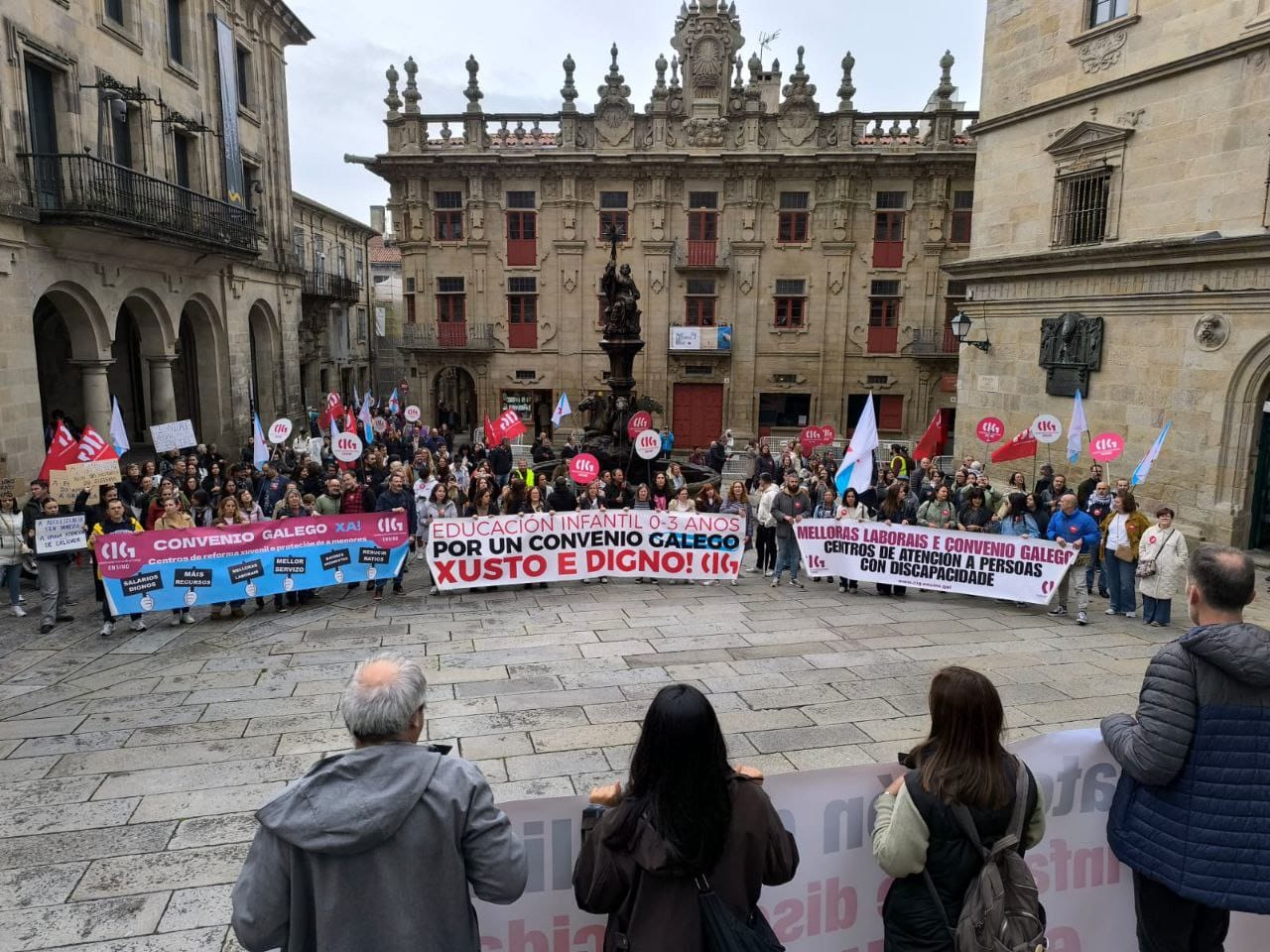 Neste contexto, e de cara a facilitar un ambiente positivo na xuntanza coa consellaría de Educación, que quedou fixada para o 5 de marzo, decidiron acurtar a protesta, á que tamén se sumaron familias das crianzas usuarias das escolas. A CIG-Ensino sinala que para recibir esta resposta, as traballadoras tiveron que iniciar mobilizacións, rexistrar un escrito dirixido á alcaldesa e ao conxunto da Corporación local, instando a que desbloquearan a situación con Educación, e mesmo realizar un reparto de follas informativas entre a comunidade educativa explicando cales son as súas demandas e as condicións nas que teñen que realizar as súas tarefas.