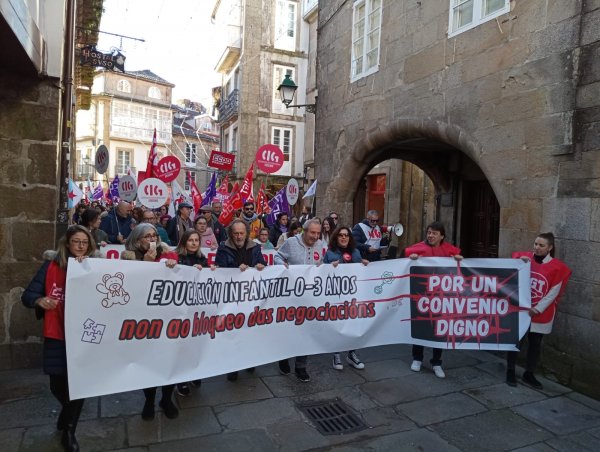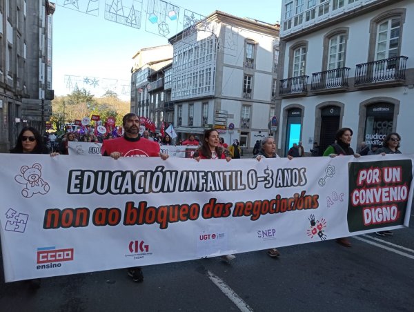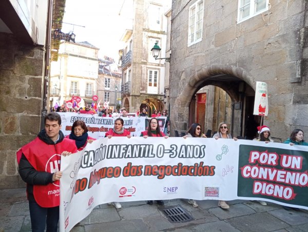 O conflito laboral das arredor de 2000 traballadoras das escolas infantís de 0 a 3 anos tanto privadas como de xestión indirecta deu un paso máis esta mañá cunha manifestación á que se sumou a comunidade educativa, tamén familias e alumnado. O vindeiro luns terá lugar unha nova reunión coa patronal do sector e, se non hai avances, o martes está convocada unha nova xornada de folga, a sexta do ano, con manifestacións na Coruña e en Vigo.