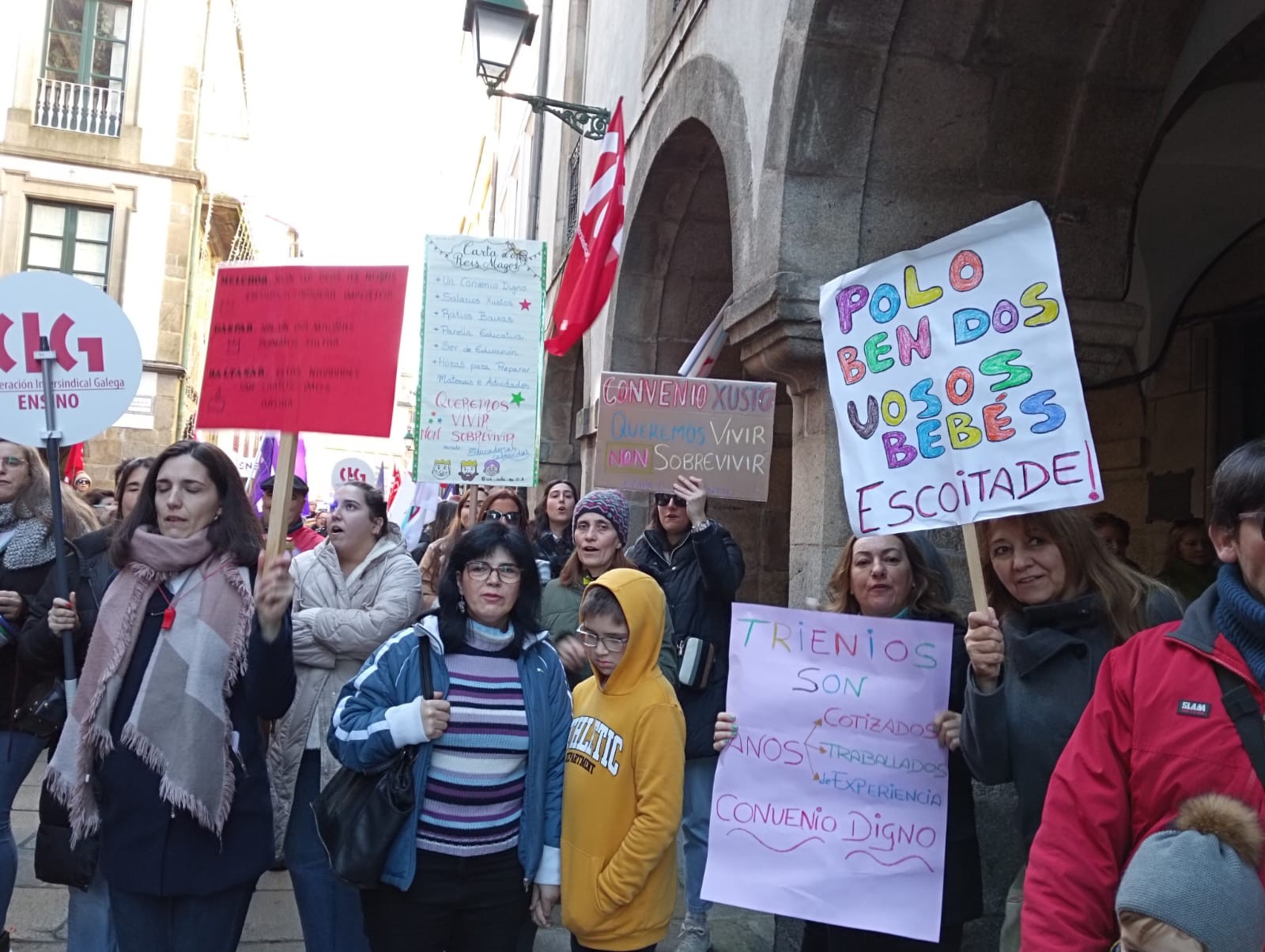 As traballadoras de educación infantil maniféstanse en Compostela en demanda de salarios dignos