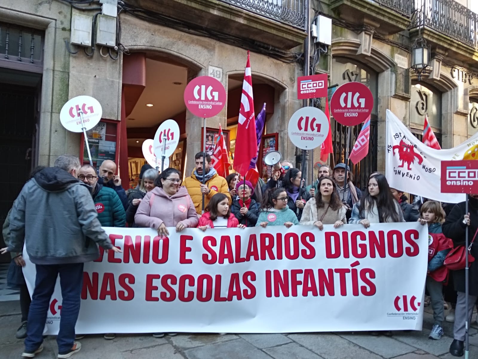 Na última mesa de negociación, que tivo lugar o 24 de novembro despois de varias mobilizacións, rexeitáronse as propostas salariais que, ademáis, non permiten recuperar o poder adquisitivo perdido (máis do 10% do IPC acumulado, o que supón máis de 100€/mes); as diferencias tan grandes entre as dúas táboas (xestión directa e indirecta), que non deberán superar os 20/30€, e máis na Galiza cando estas ensinanzas son gratuítas para as familias ou que nas táboas salariais de xestión indirecta se manteñan as diferencias entre as empresas que teñen novos pregos de contratación e quen non.