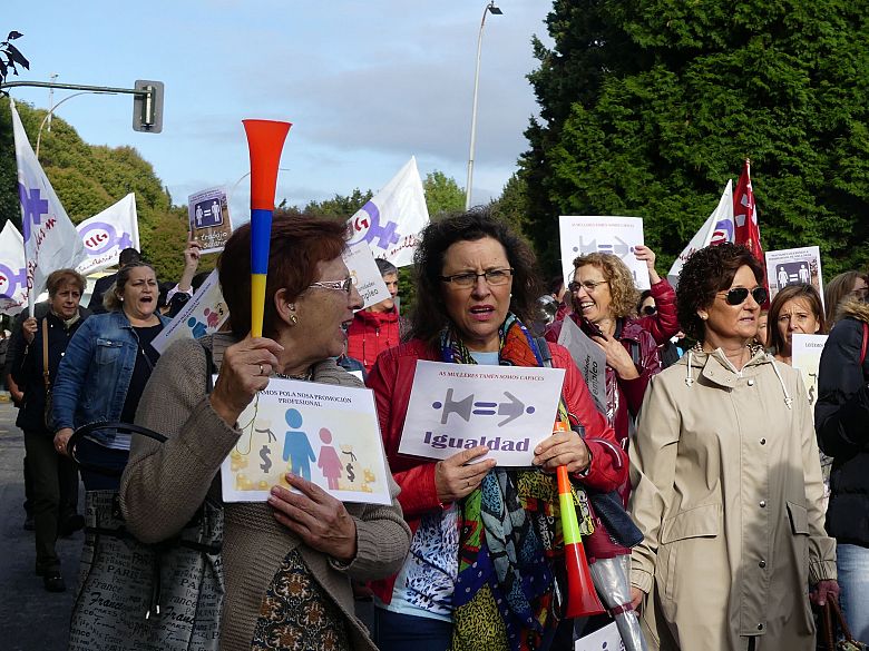 Ao igual que cada xoves, desde o pasado mes de maio, as traballadoras da empresa concesionaria do servizo de limpeza da Xunta, Grupo Norte, mobilizáronse esta mañá para reclamar a “igual traballo, igual salario” e denunciar a discriminación que sofren polo feito de ser mulleres. Tal é así que os traballadores desta empresa, pasado un período de tempo, ascenden a peón especialista, unha categoría que porén, non ten ningunha das traballadoras recoñecida.