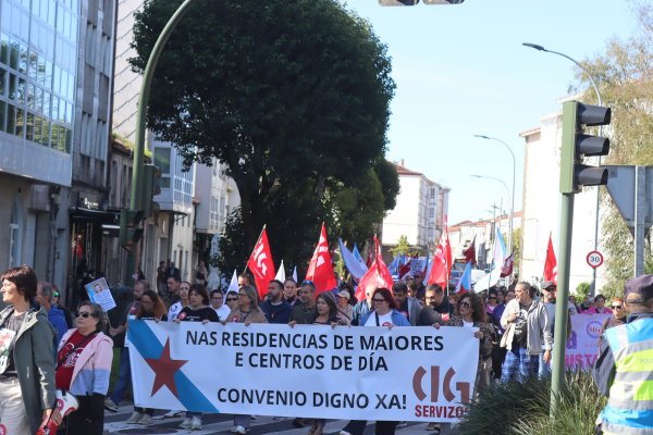 As traballadoras do sector de coidados -Residencias, Centros de Día e SAF- percorreron esta mañá as rúas de Compostela para denunciar a precariedade laboral e salarial que padecen, na primeira das novas xornadas de folga á que están convocadas. Mañá manifestaranse polas rúas de Vigo. O secretario nacional da CIG-Servizos, Carlos Arján, considerou “indecente” que o Presidente da Xunta, Alfonso Rueda, botara “balóns fóra” na sesión de control do Parlamento de Galiza.
