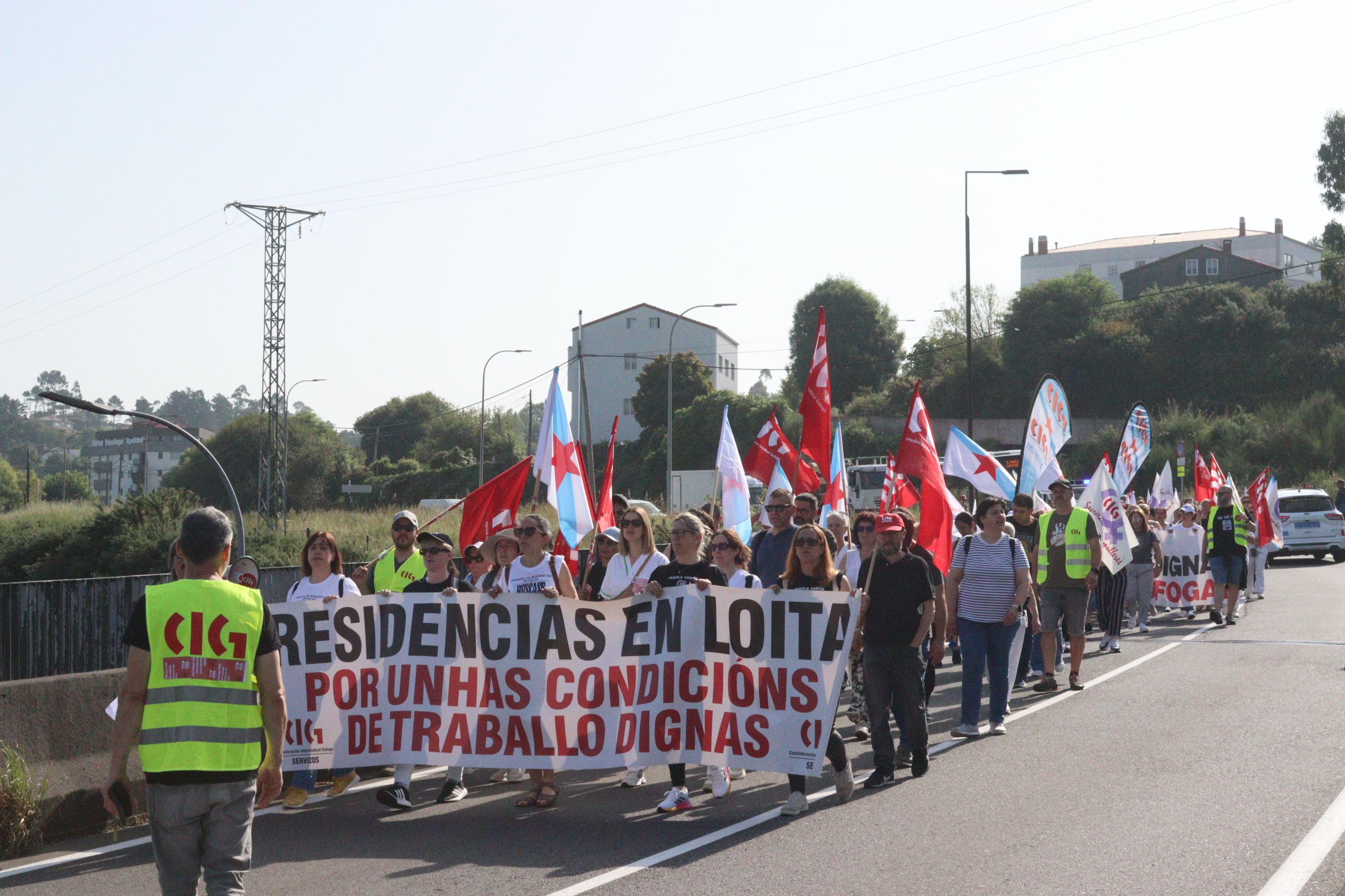 As traballadoras procedentes das provincias da Coruña e Lugo iniciaron a súa marcha na residencia Raiola de San Marcos, mentres que as chegadas de Pontevedra e Ourense partiron da residencia de maiores de Amancio Ortega, en Pontedriña. Ambos os grupos confluíron diante do edificio administrativo da Xunta de Galiza en San Caetano, onde pronunciaron manifestos cargados de forza que detallaban as súas loitas e demandas de cambio.