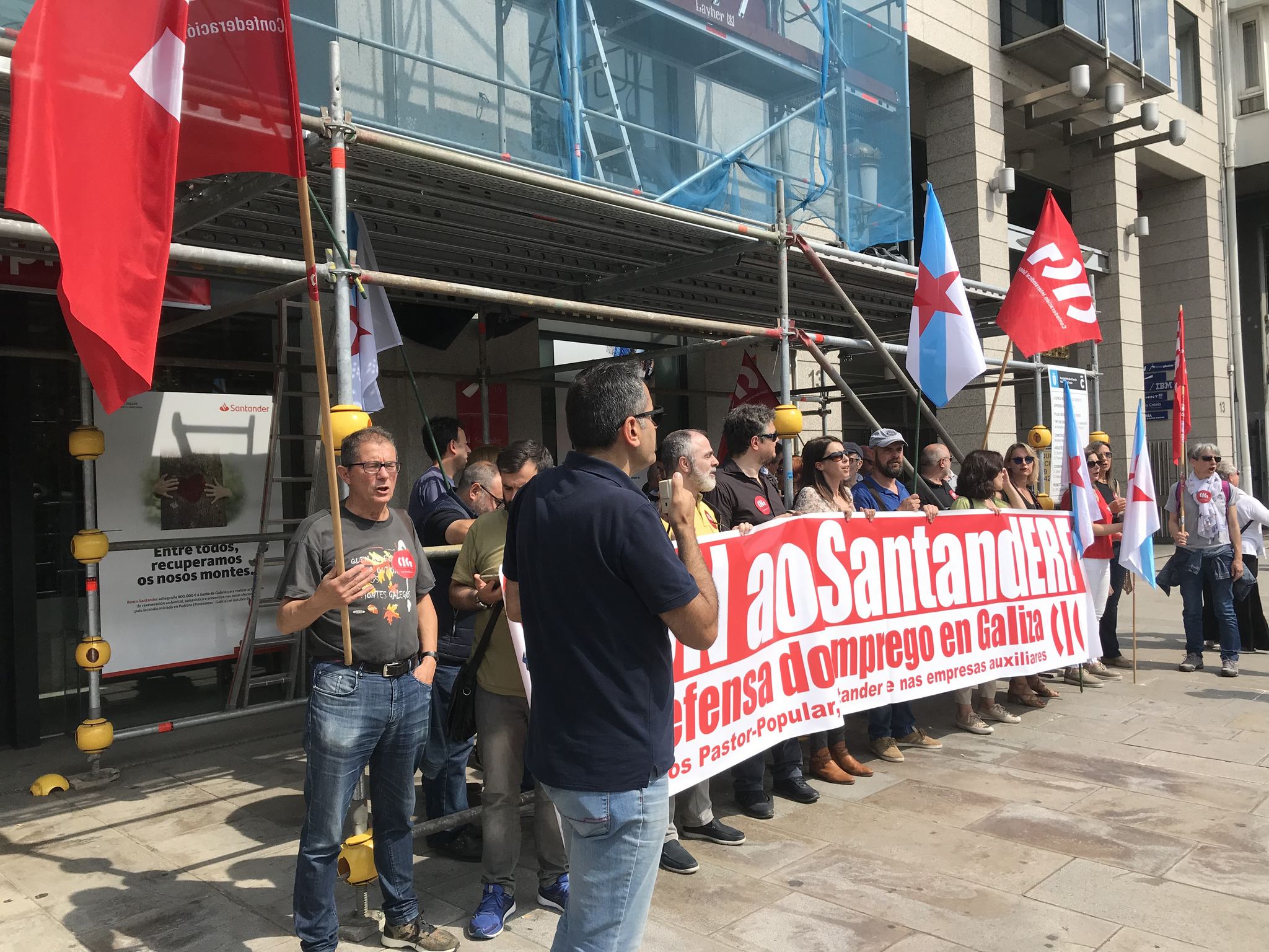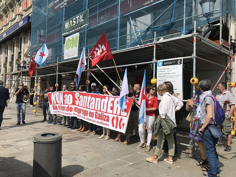A CIG realizou este xoves unha concentración diante dunha oficina do Banco Santander na Coruña en protesta polas presións que a entidade esta a exercer sobre o persoal para "instalo" a que se adhira ao ERE, incumprindo así o compromiso de respectar a voluntariedade como principio fundamental da adscrición. Pero ademais, dende a sección sindical advirten que xa se está a preparar un novo recorte de emprego en Galiza, pois o Santander ten intención de pechar o centroOrillamar e despedir as súas 41 traballadoras e traballadores.