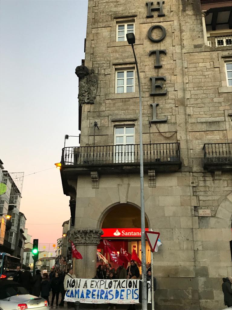 Camareiras de pisos mobilízanse en Compostela contra a explotación laboral que sofre este colectivo